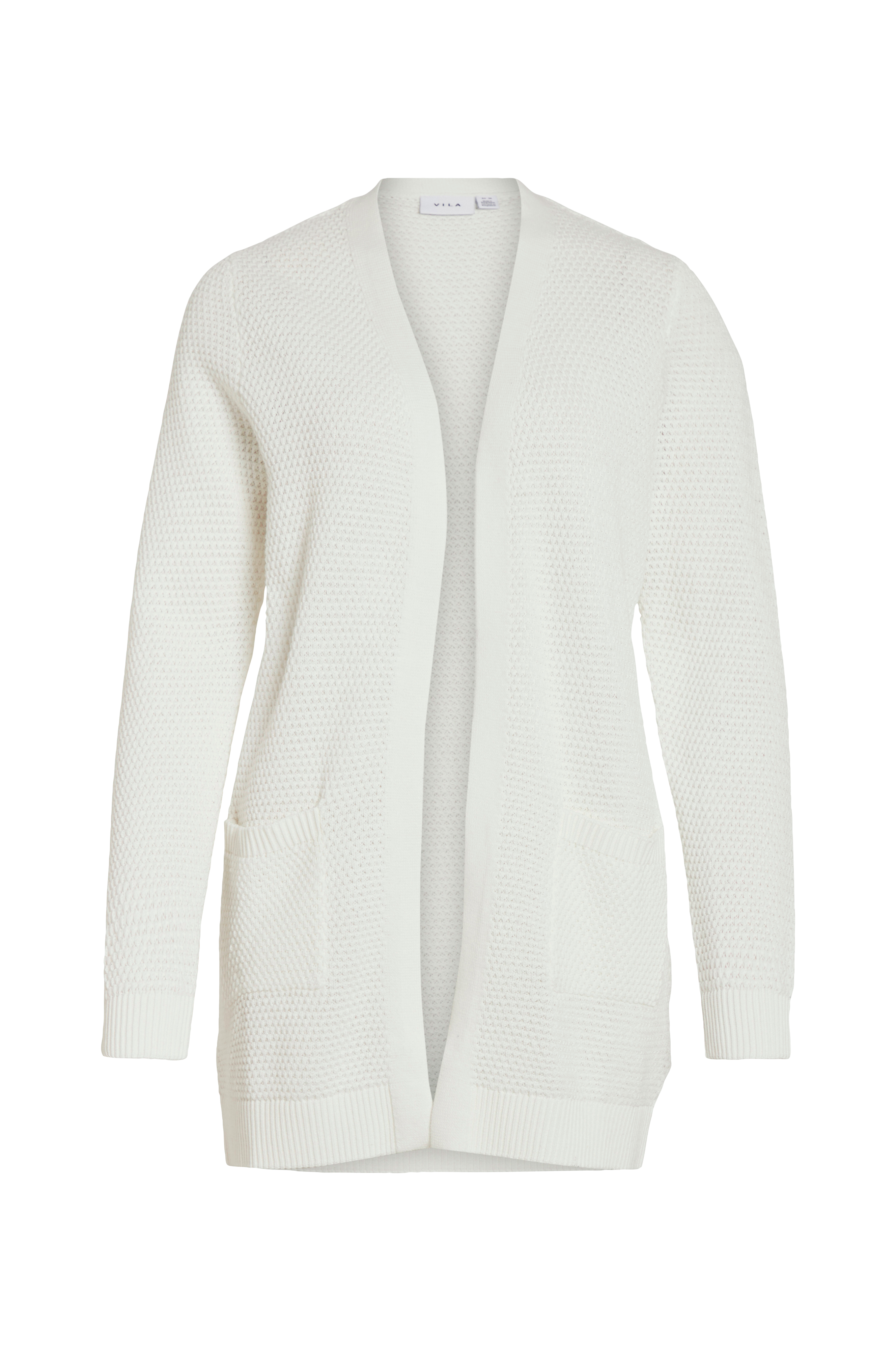 • Strukturstrikket cardigan i bomuld• Åben front• Forlommer• Lange ærmer• Ribstrik ved manchetterne og ved nederste kant