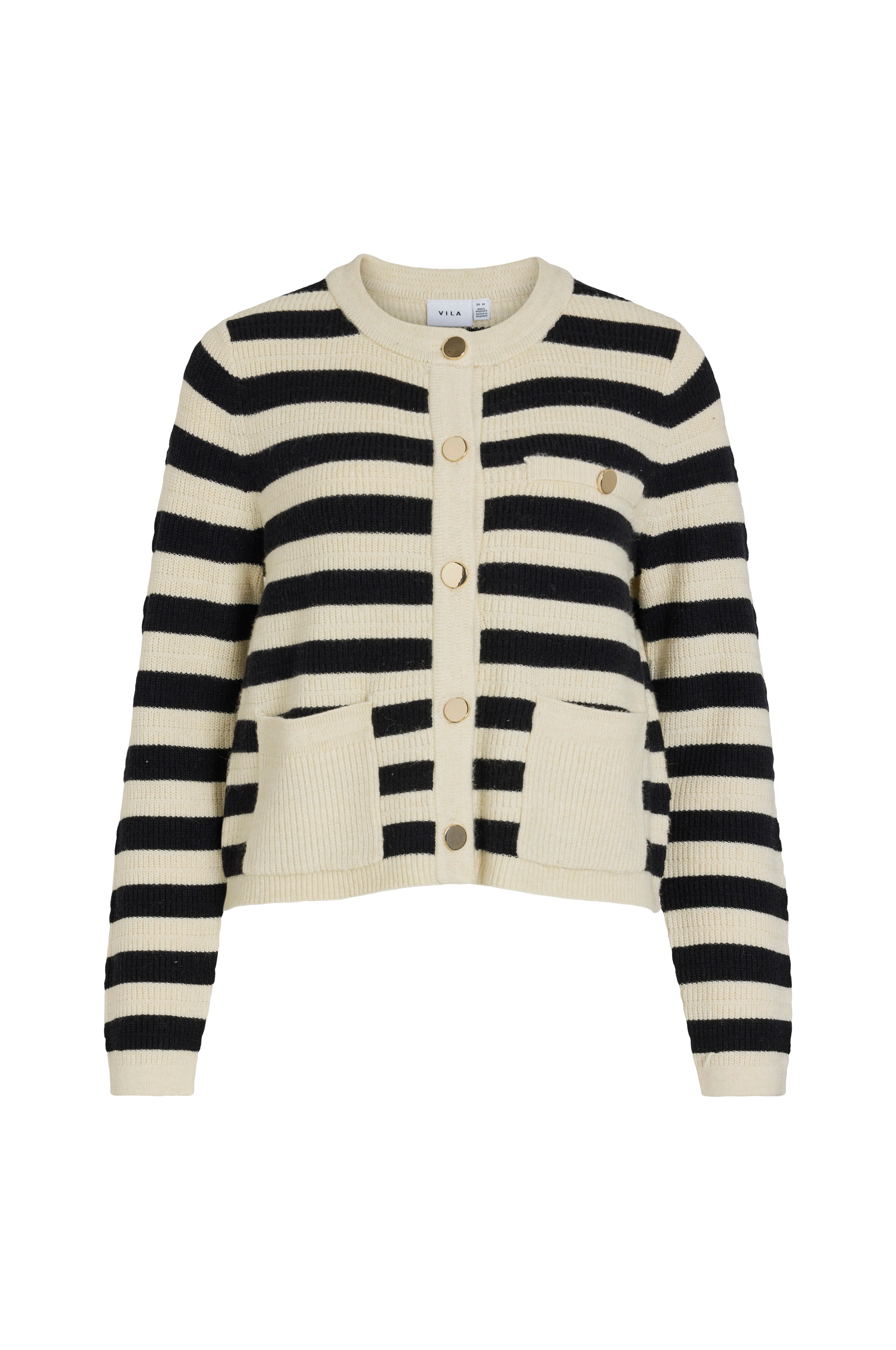 • Fintstrikket cardigan i blød viskoseblanding med stribet mønster • Lange arme med ribstrik ved manchetterne • Afrundet halsudskæring • Knapstolpe foran med dekorative, guldfarvede knapper • To lommer foran • Ribstrik nederst og i halsen • Normal pasform