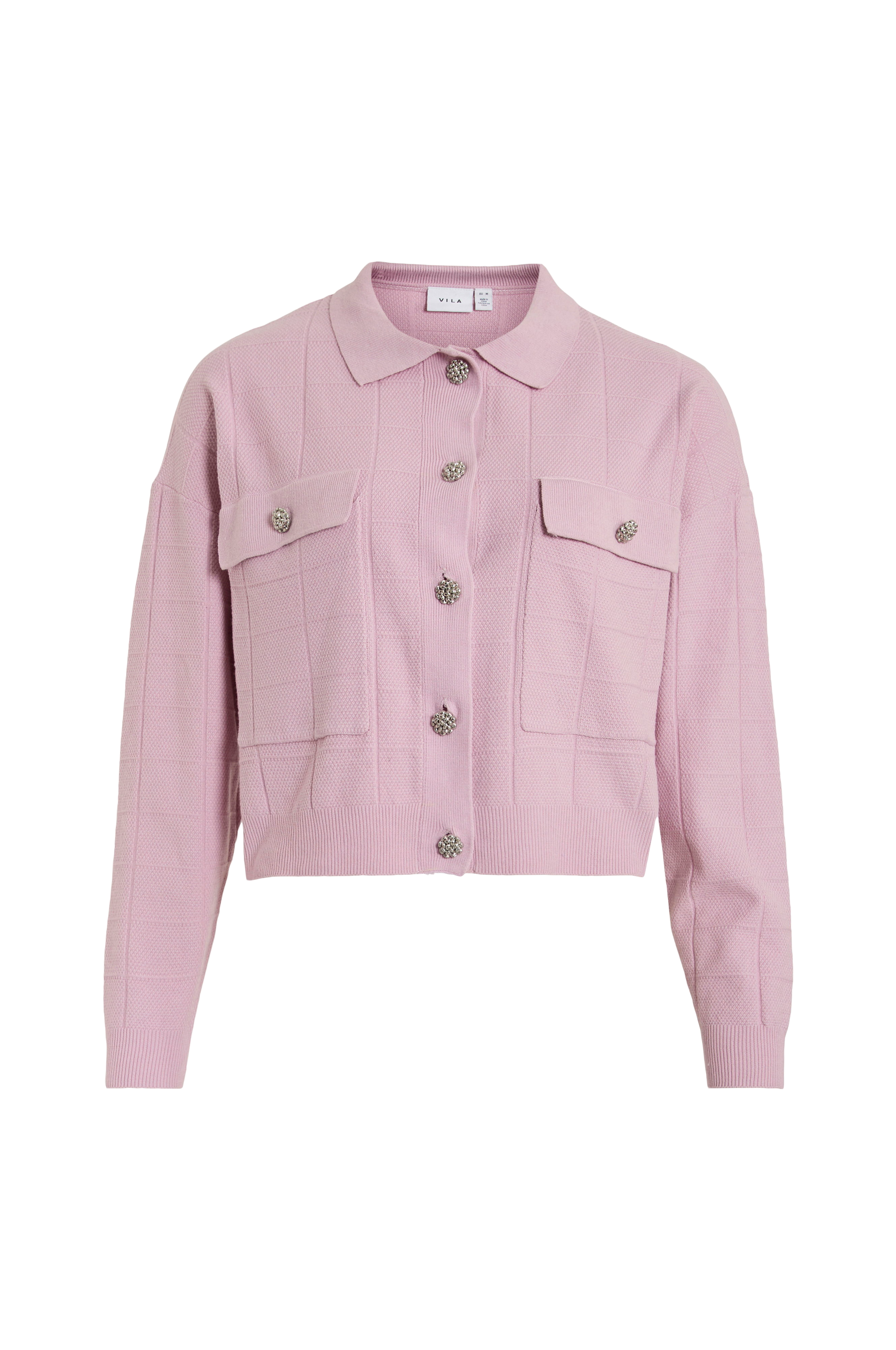 • Fintstrikket cardigan i polyesterblanding med strukturmønster • Afrundet halsudskæring med krave • Knapstolpe foran med dekorative, sølvfarvede knapper • Lange arme med nedsænket skulder • Ribstrik ved manchetterne og nederst • To lommer foran med låg og sølvfarvet knap • Kort, normal pasform
