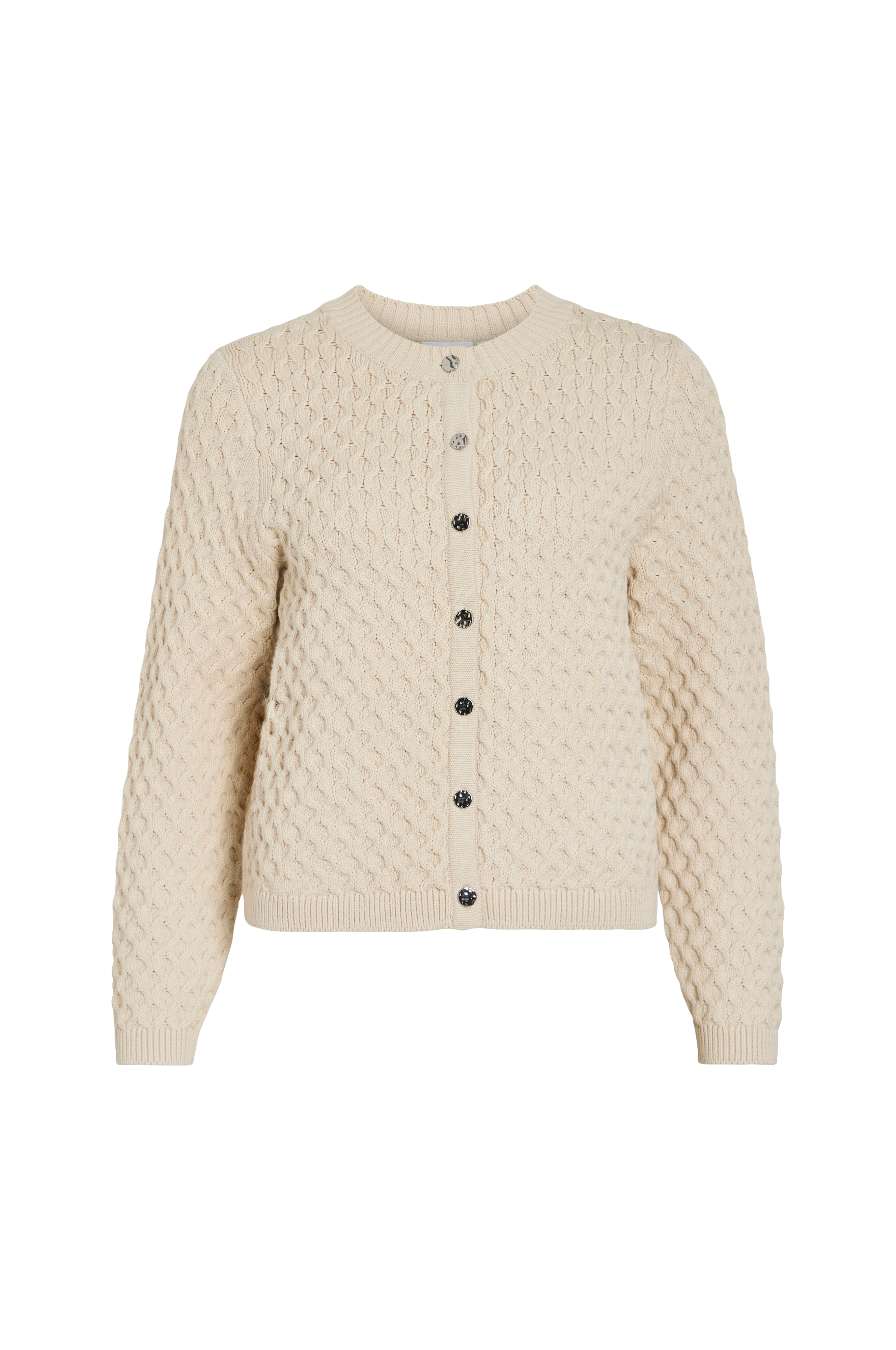 • Strukturstrikket cardigan med sølvagtige knapper foran• Rund, ribbet halsudskæring• Ribstrik ved manchetterne og ved nederste kant