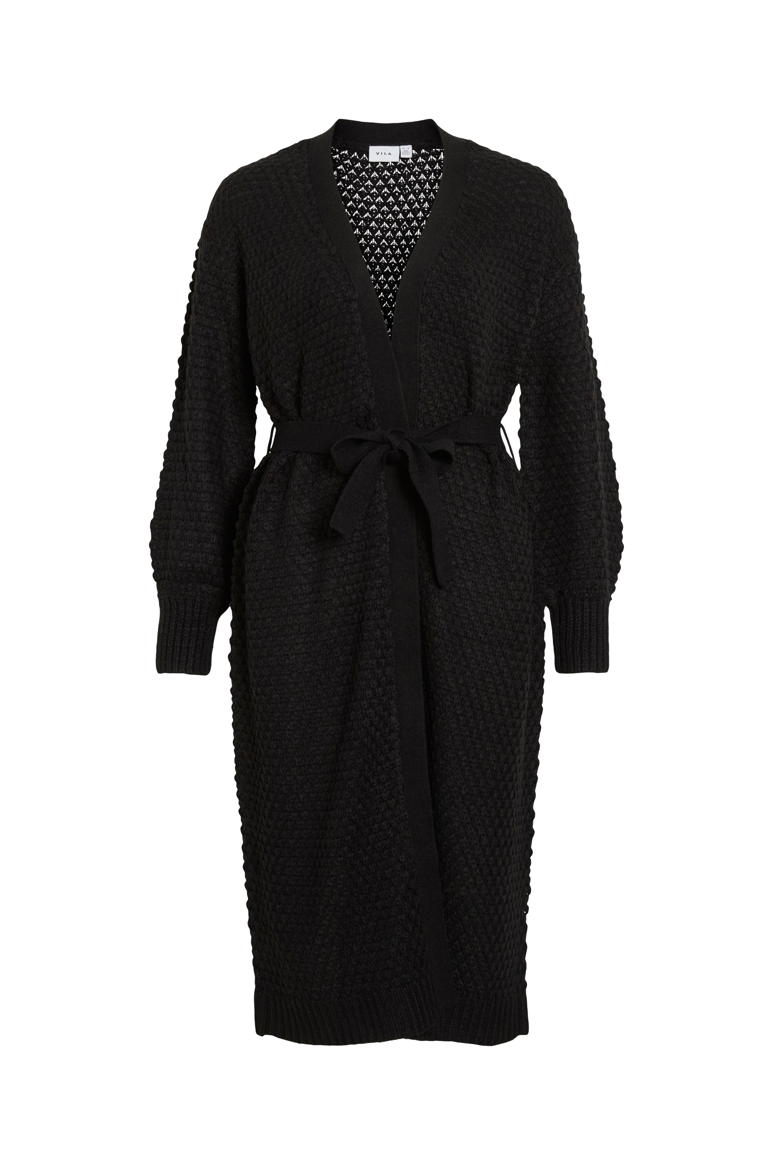 • Lang, strukturstrikket cardigan• Lange ærmer med elastikmanchetter ved ærmeafslutningerne• Aftageligt bæltespænde ved taljen• Ribstrik nederst