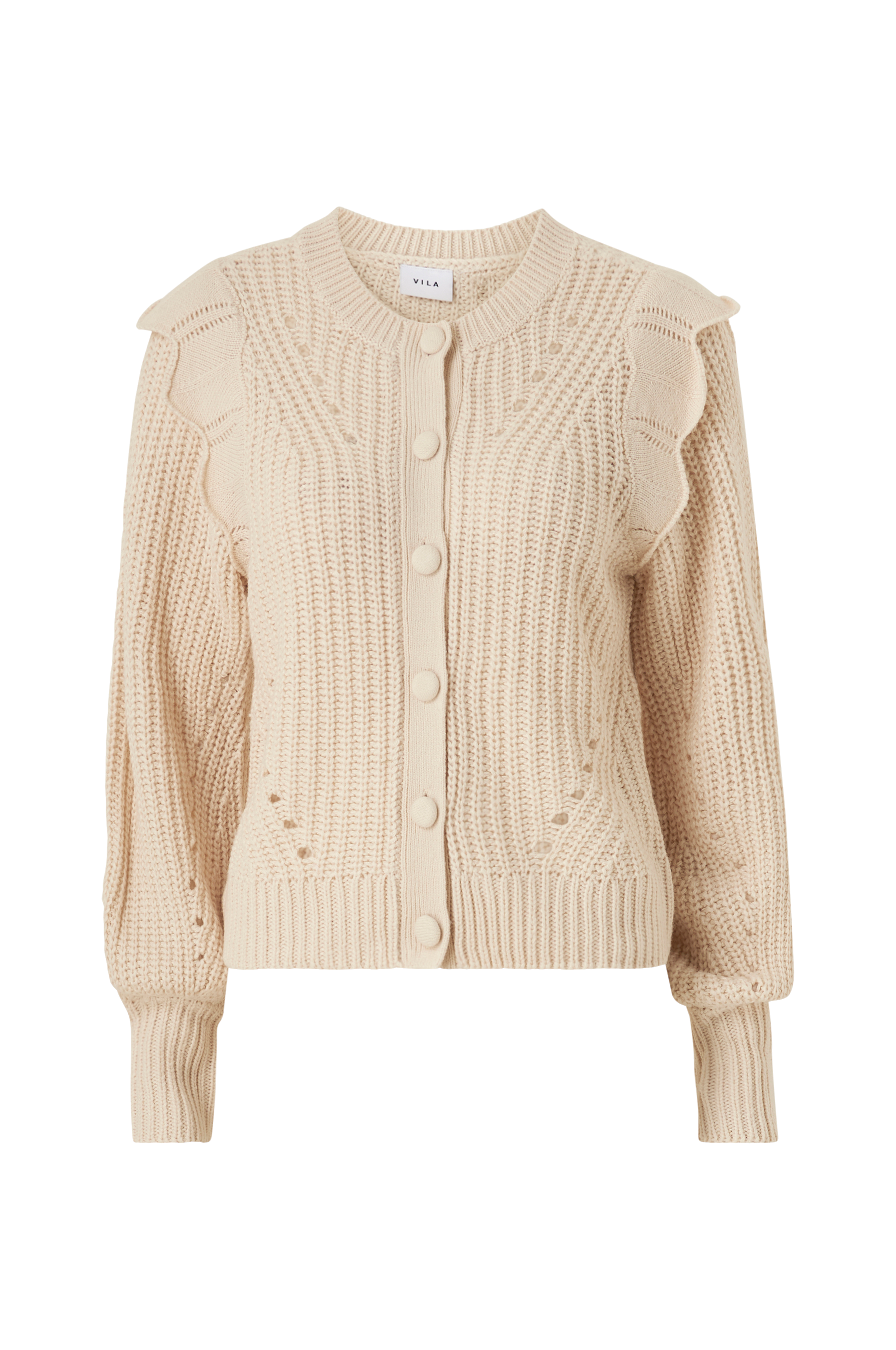 • Strikket cardigan• Volanter på skuldrene• Beklædte knapper• Brede ærmer med manchet