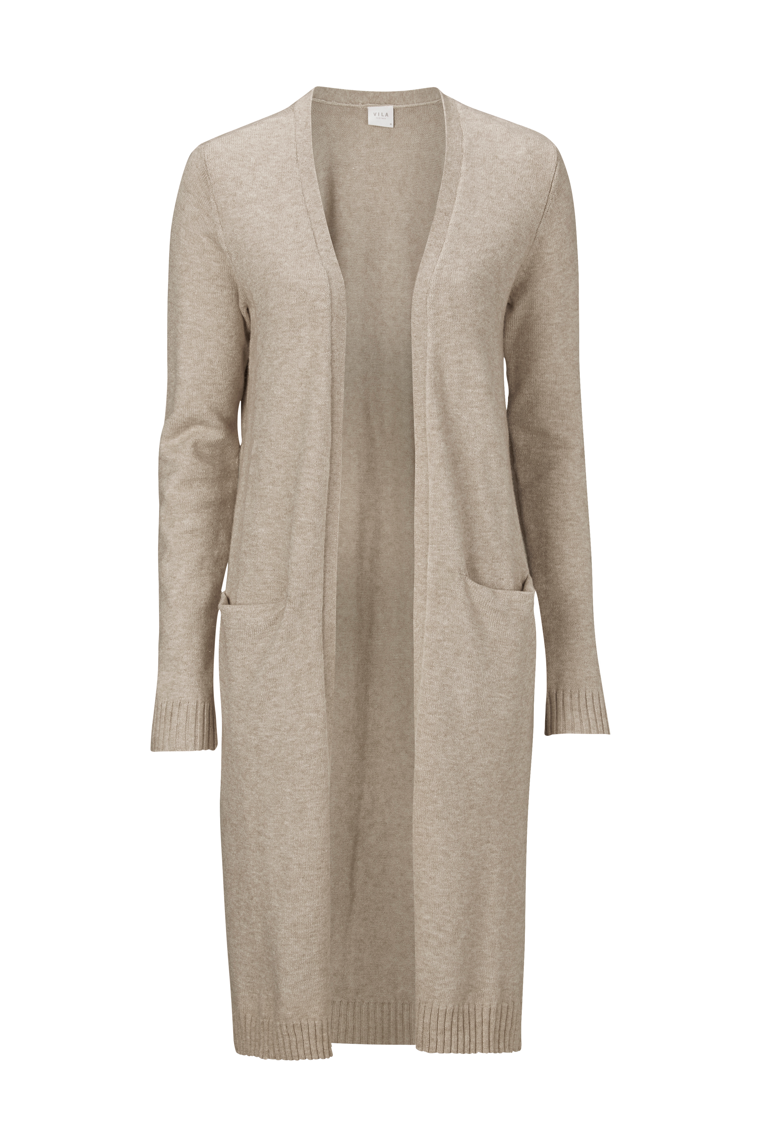 Cardigan viRil L/S Long Knit fra Vila er i lang, skøn model som er glatstrikket i blødt garn. To forlommer. Ribstrikkede kanter i ærmekanter og forneden. Længde bagpå ca. 108 cm i M.