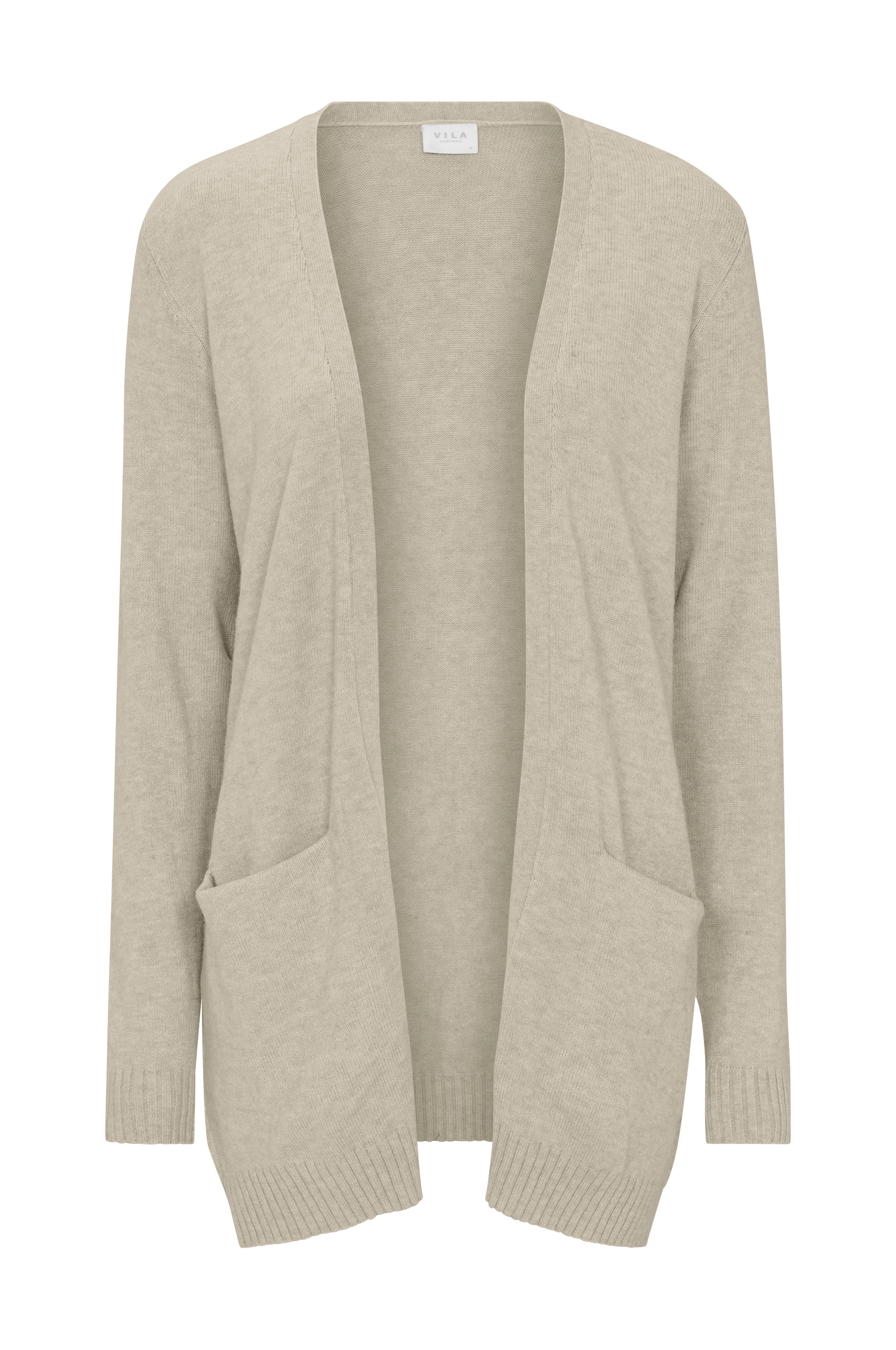 Cardigan viRil L/S Open Knit fra Vila. Lang, flot model uden lukning med indvævet kant foran. To indsatte lommer og groftribbet kant i ærmekanten og forneden. Længde ca. 84 cm i str. M.