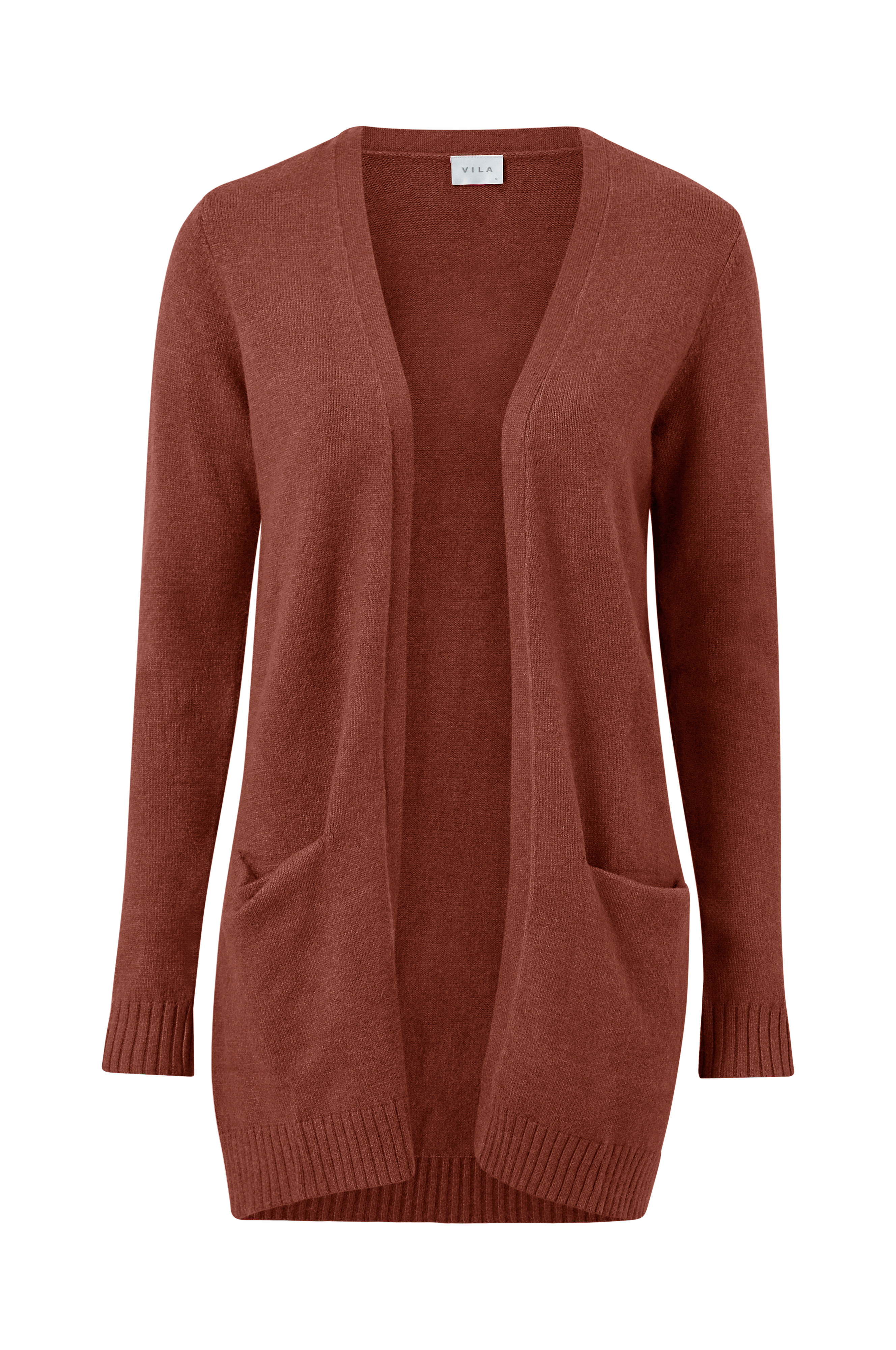 Cardigan viRil L/S Open Knit fra Vila. Lang, flot model uden lukning med indvævet kant foran. To indsatte lommer og groftribbet kant i ærmekanten og forneden. Længde ca. 84 cm i str. M.