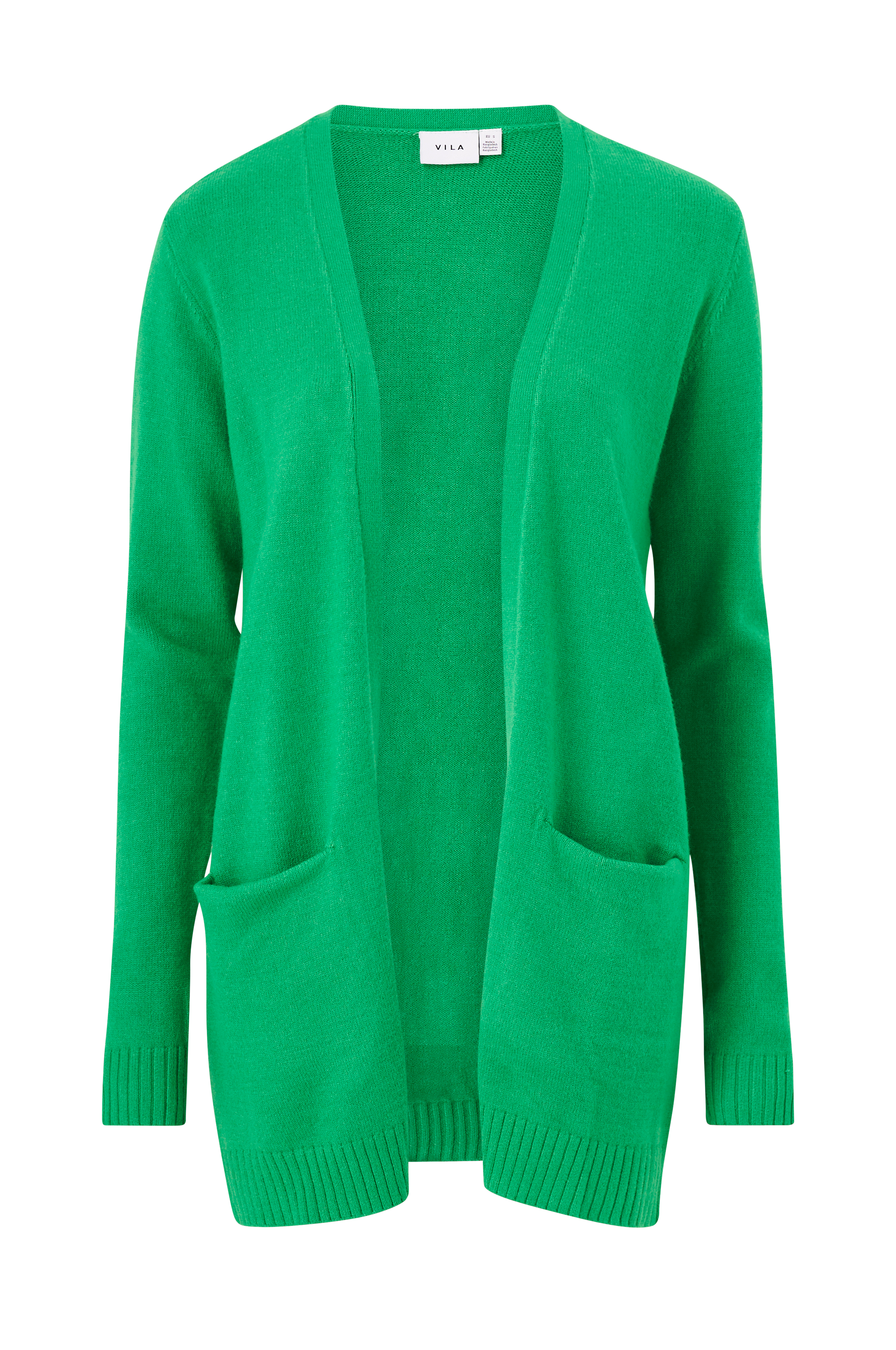Cardigan viRil L/S Open Knit fra Vila. Lang, flot model uden lukning med indvævet kant foran. To indsatte lommer og groftribbet kant i ærmekanten og forneden. Længde ca. 84 cm i str. M.