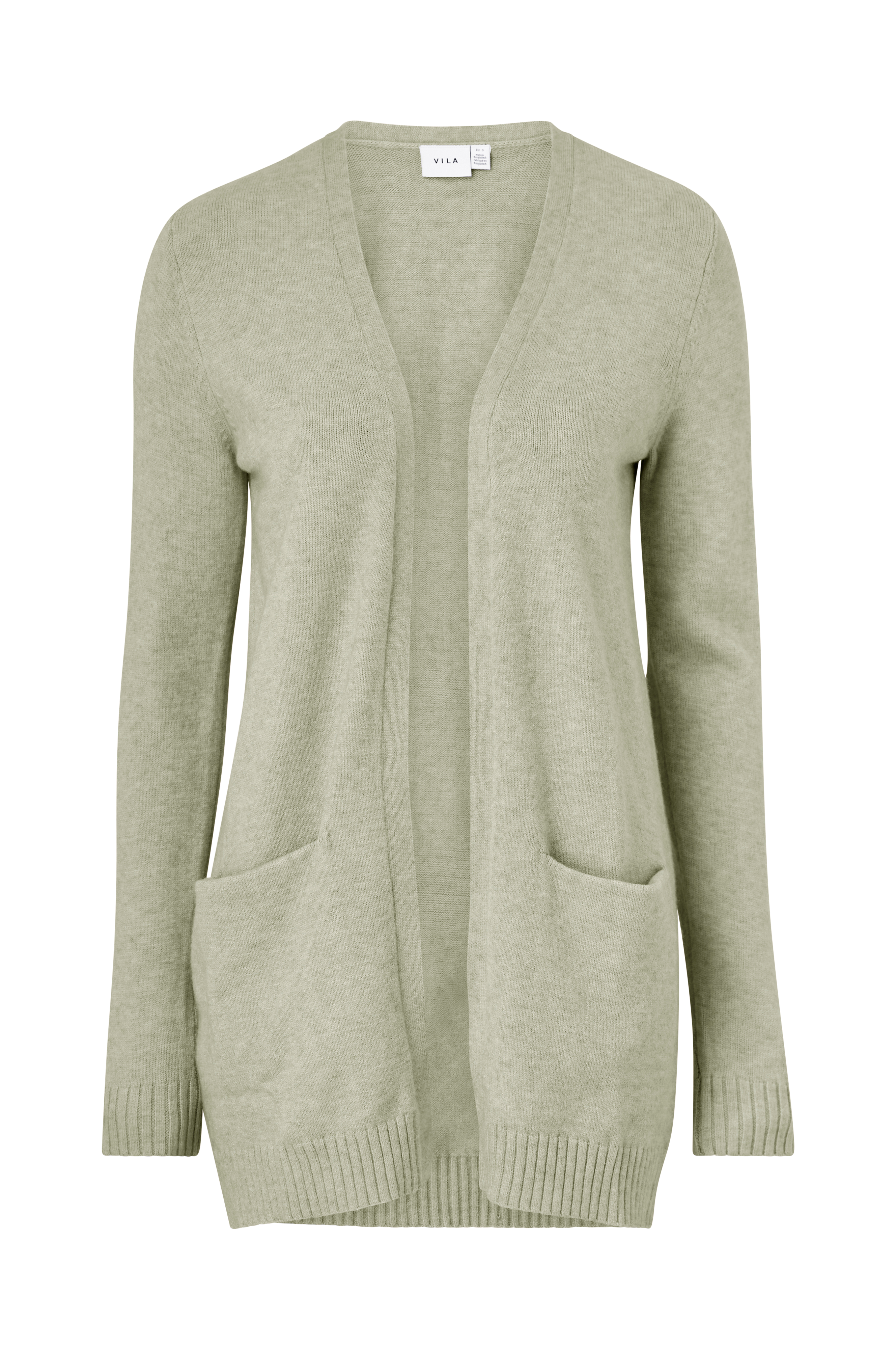 Cardigan viRil L/S Open Knit fra Vila. Lang, flot model uden lukning med indvævet kant foran. To indsatte lommer og groftribbet kant i ærmekanten og forneden. Længde ca. 84 cm i str. M.