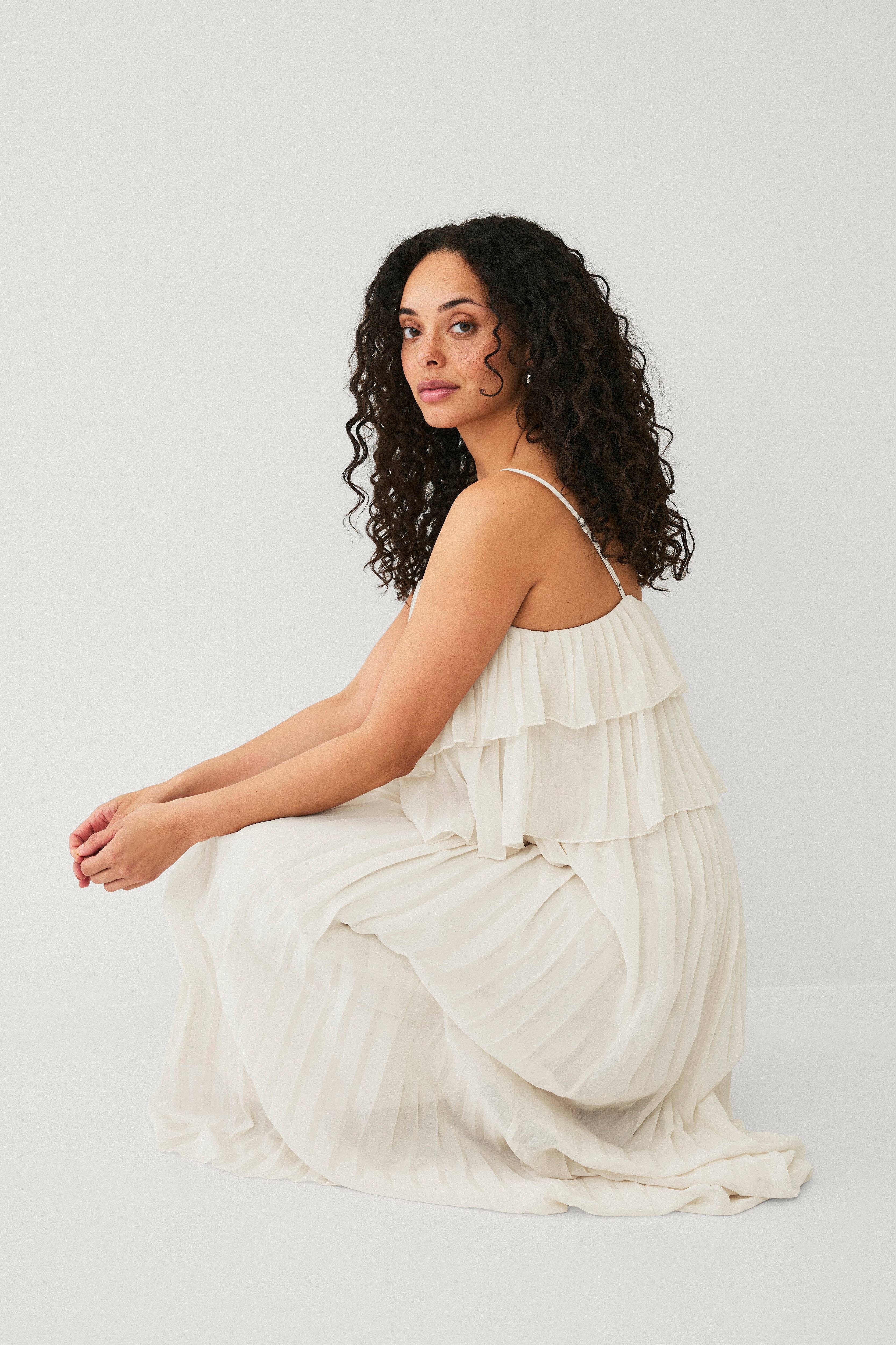 • Chiffon kjole med flere lag og tynd, justérbar skulderstrop• Lang, afslappet pasform• Fremstillet af tyndt, luftigt, plisseret materiale med for indeni• Længde: 120 cm i størrelse 36