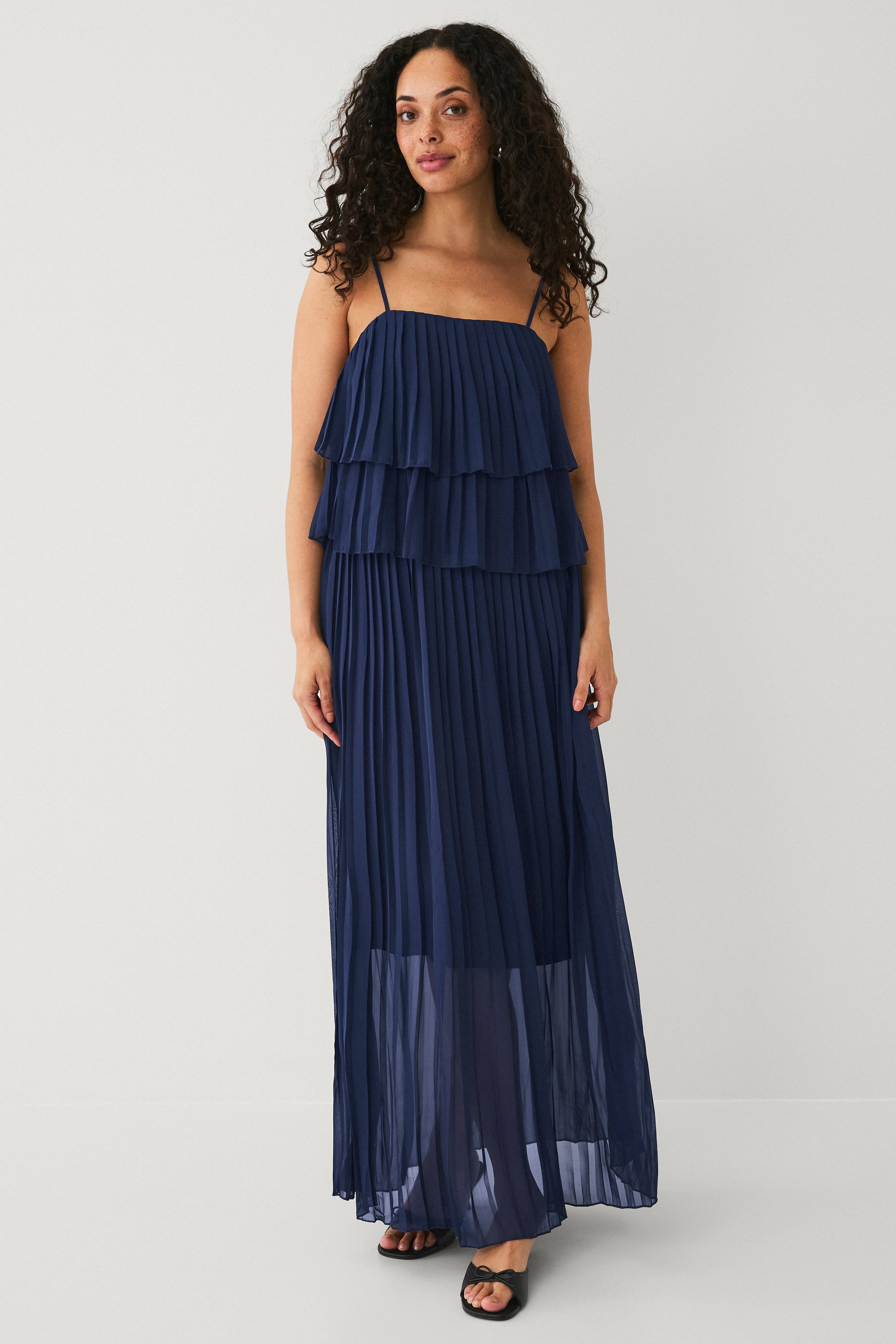 • Chiffon kjole med flere lag og tynd, justérbar skulderstrop• Lang, afslappet pasform• Fremstillet af tyndt, luftigt, plisseret materiale med for indeni• Længde: 120 cm i størrelse 36