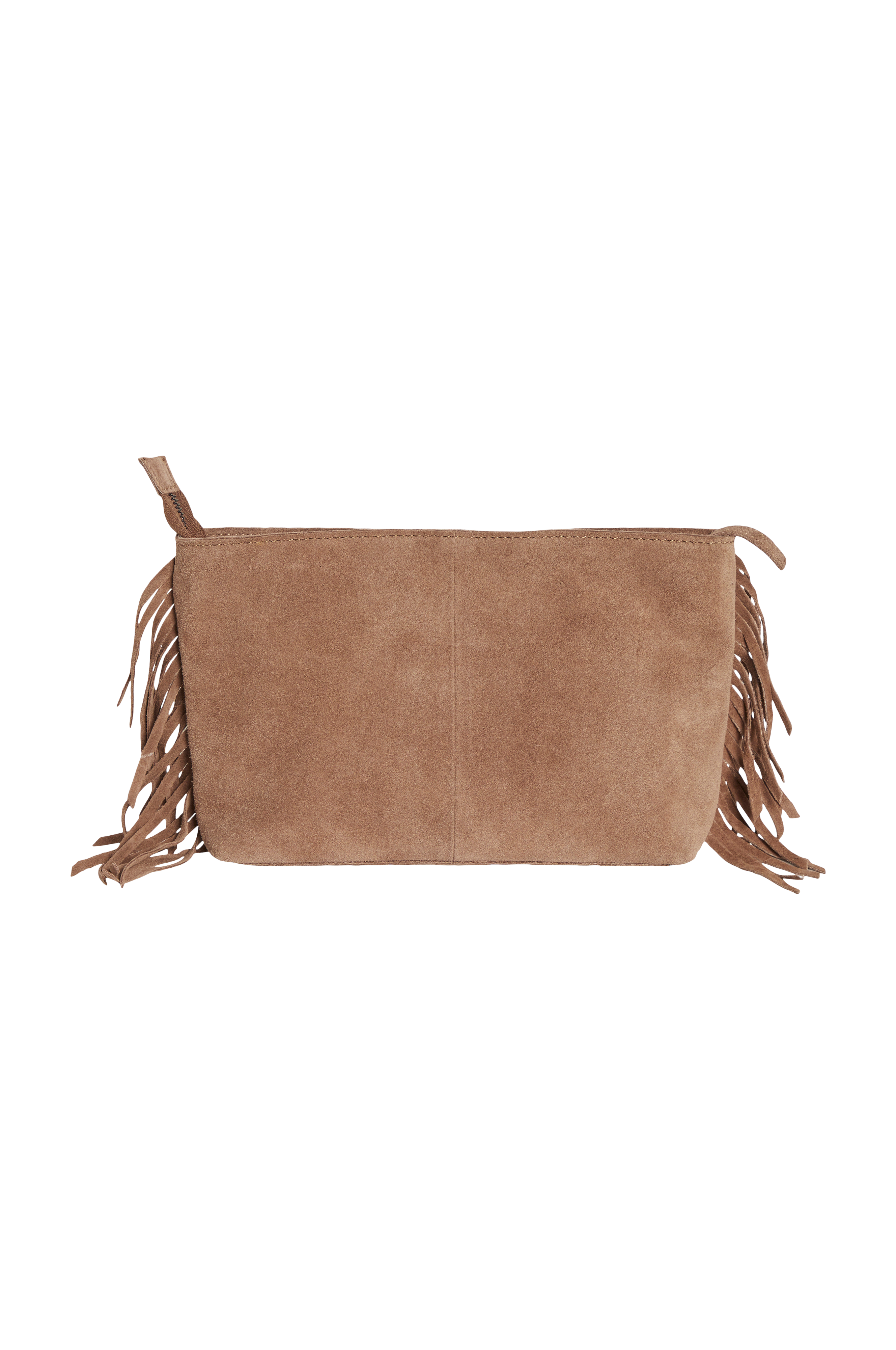 • Clutch i ruskind• Frynser i siderne• Tekstilforing• Lynlåslukning• Fag med lynlås på indersiden• Mål: B 25 x H 17 x D 5 cm
