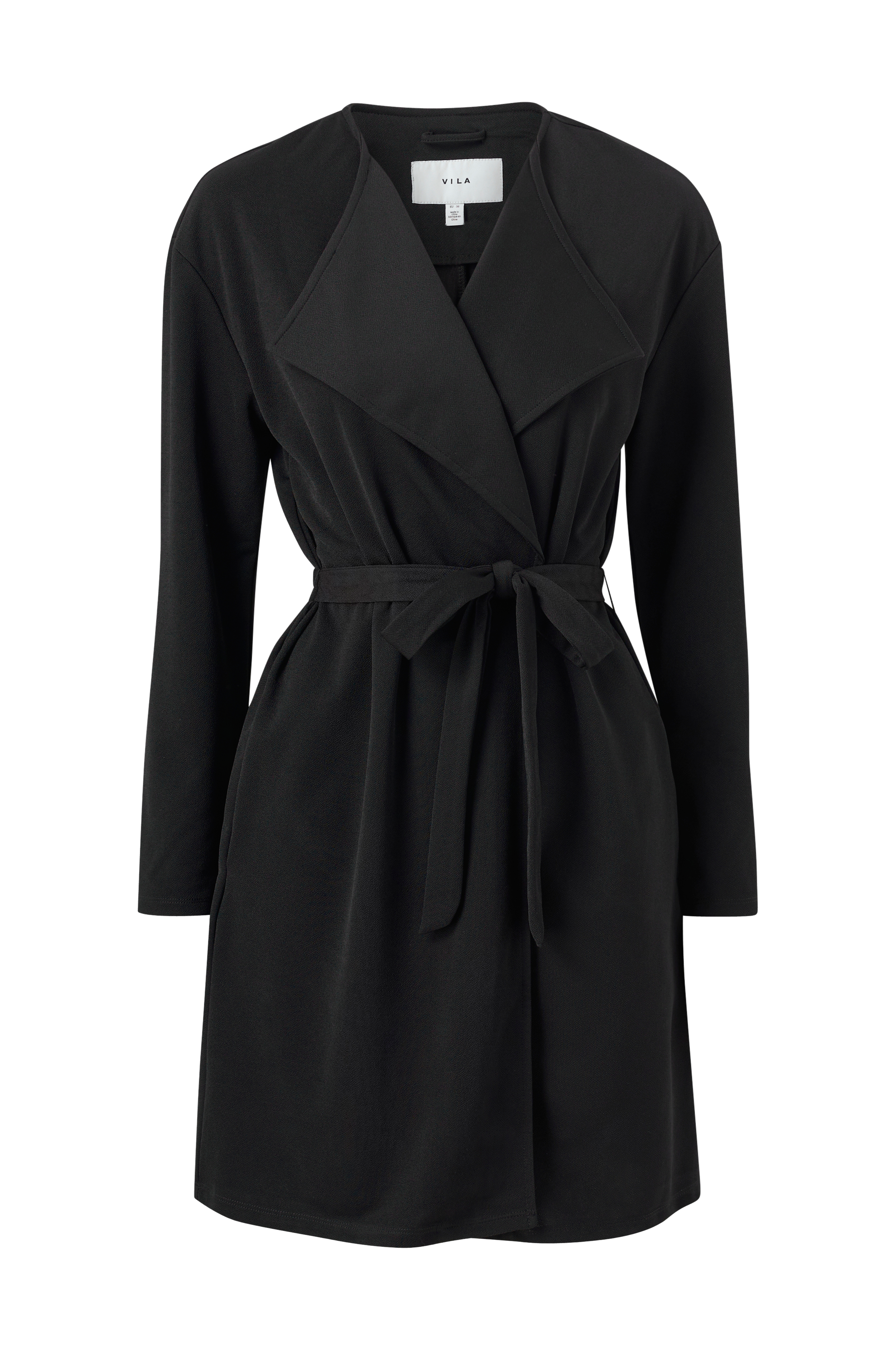 Mellemlang, uforet blazer/cardigan med bindebælte i taljen. Lommer i siderne. Stretchkvalitet.