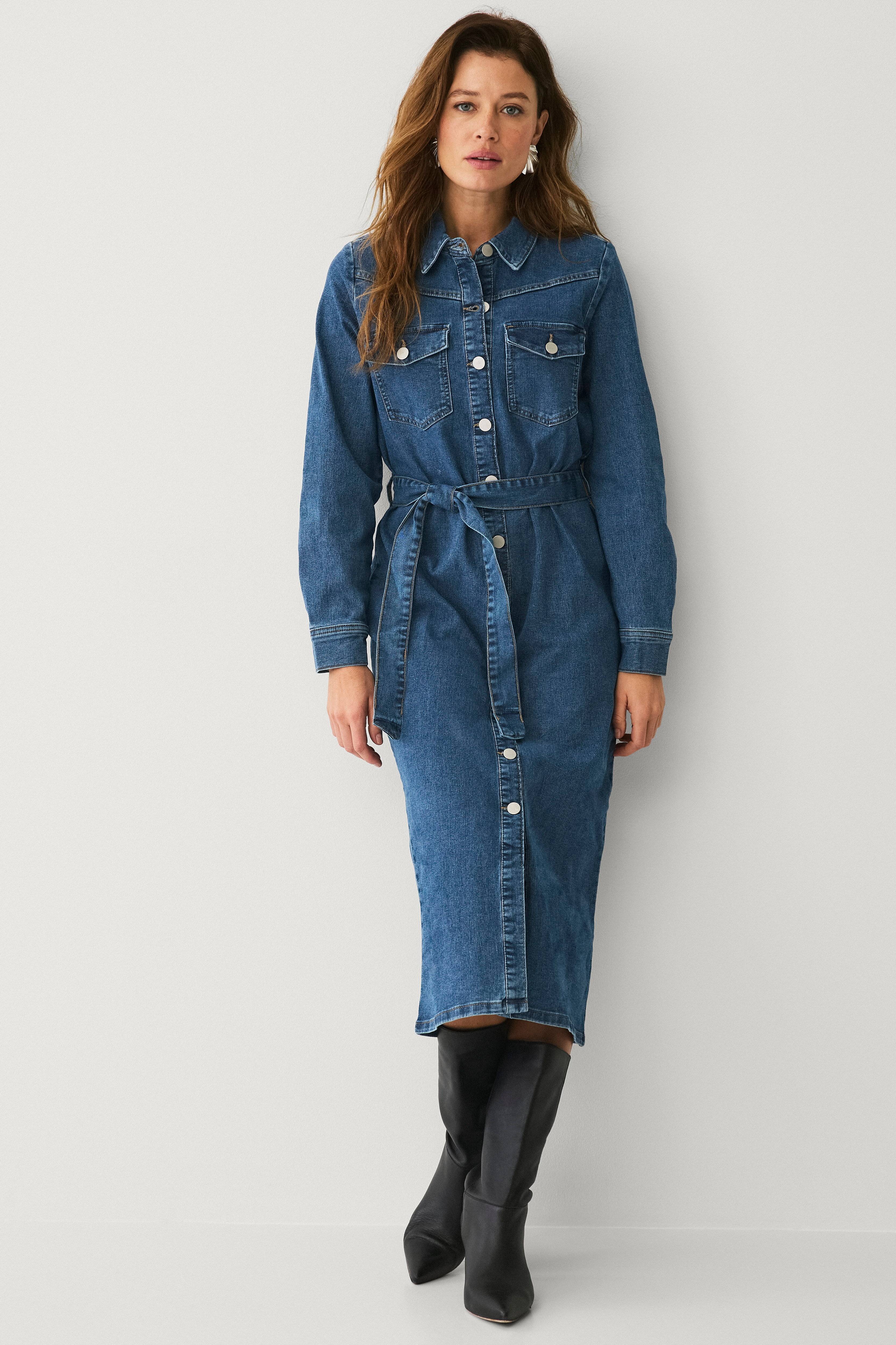 Jeg har længe ledt efter en prisværdig jeanskjole til mig, 163 cm 70 kg. Jeg købte str. M - den sidder perfekt! Kan virkelig anbefales.