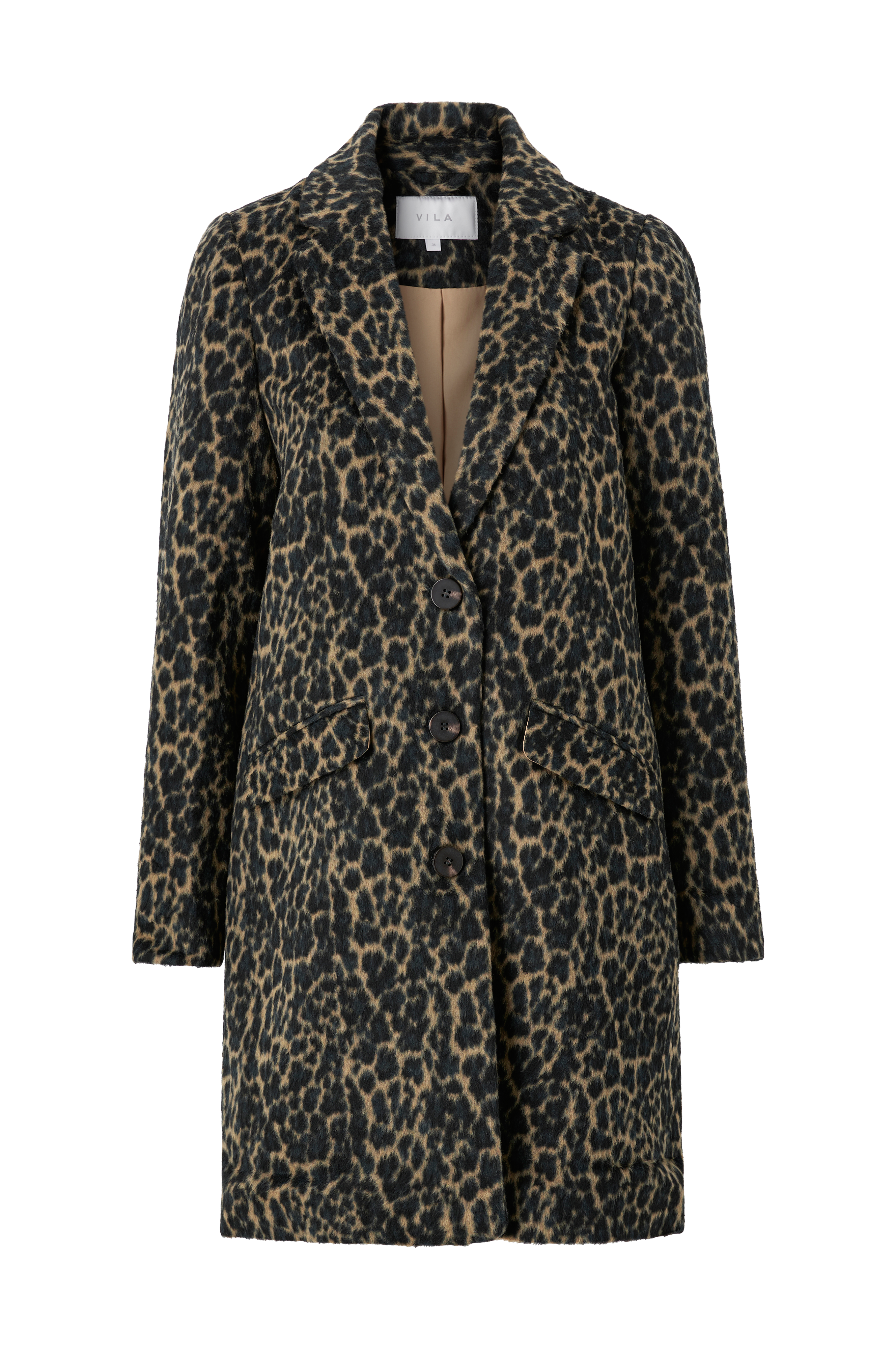 Frakke viLeovita Coat fra Vila. Lige model med krave og revers samt tre knapper foran. Indvendige skulderpuder og to indsatte paspolerede lommer med klap. Længde ca. 92 cm i str. 36.