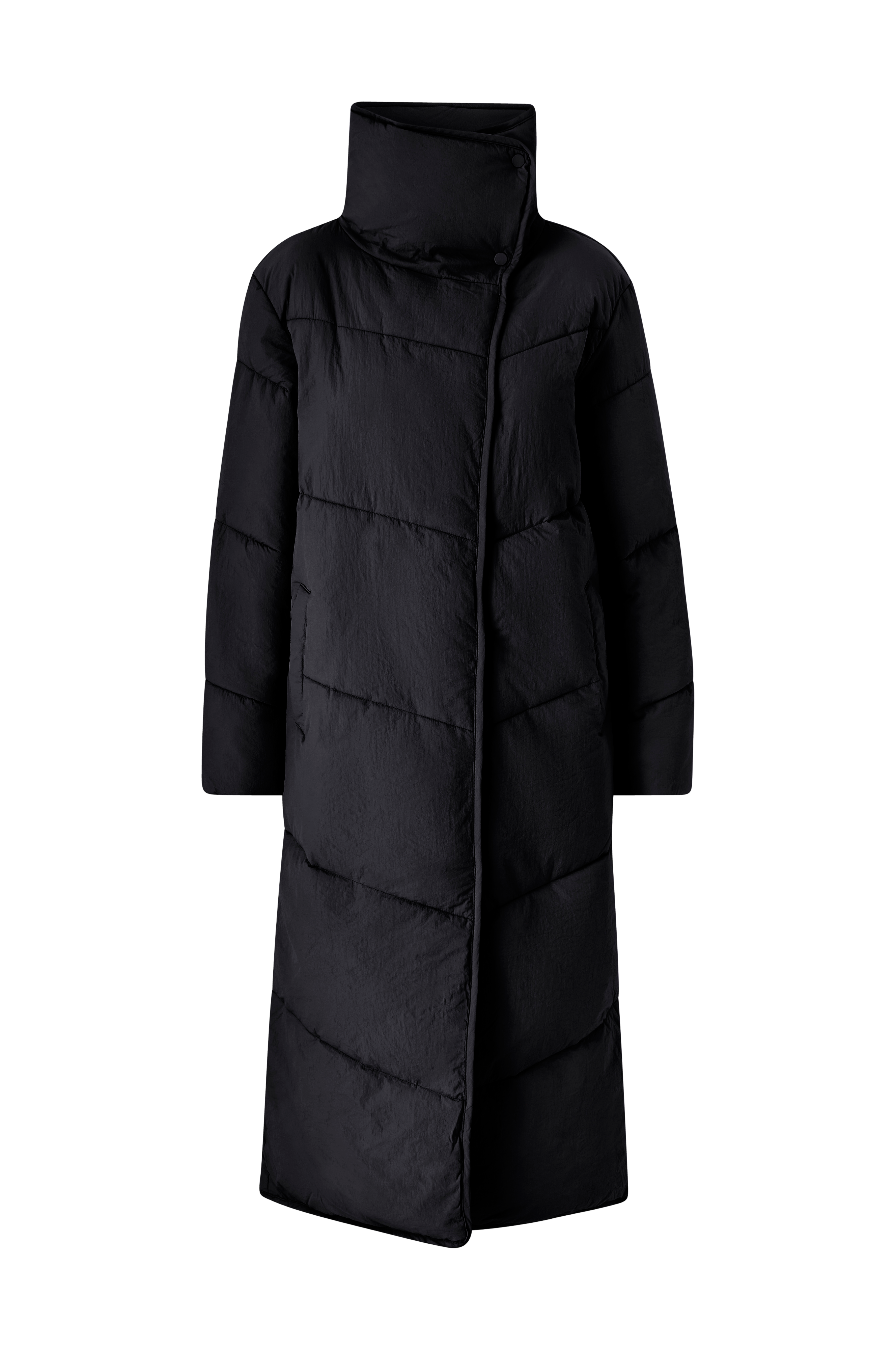 • Lang, foret frakke• Skjulte trykknapper foran• Høj ståkrave• To lommer• Længde: 118 cm i størrelse 36