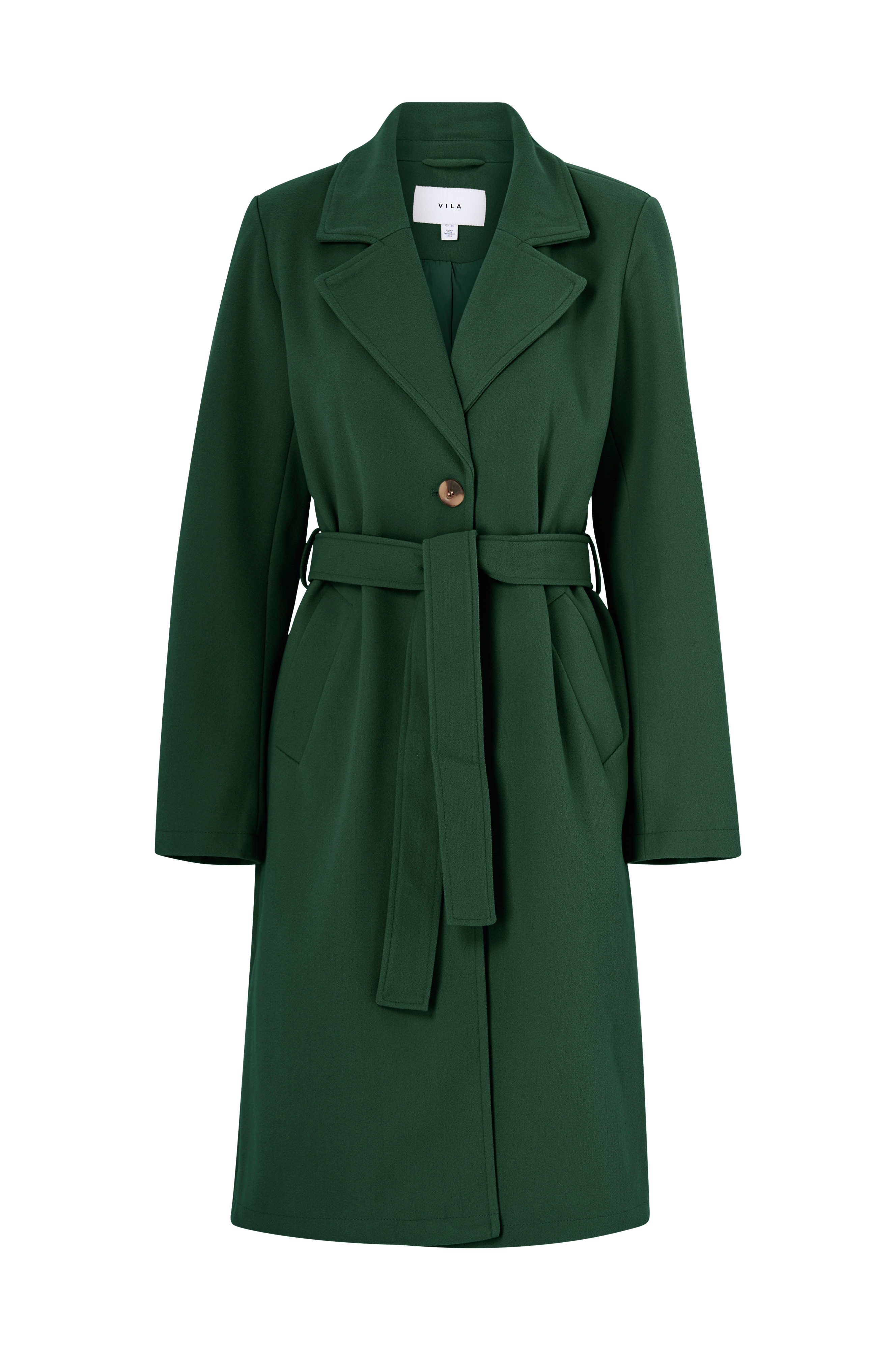 • Stilren, klassisk frakke• Bindebælte ved taljen• To lommer• Blød, filtet kvalitet• Vævet for• Længde: 105 cm i størrelse 36