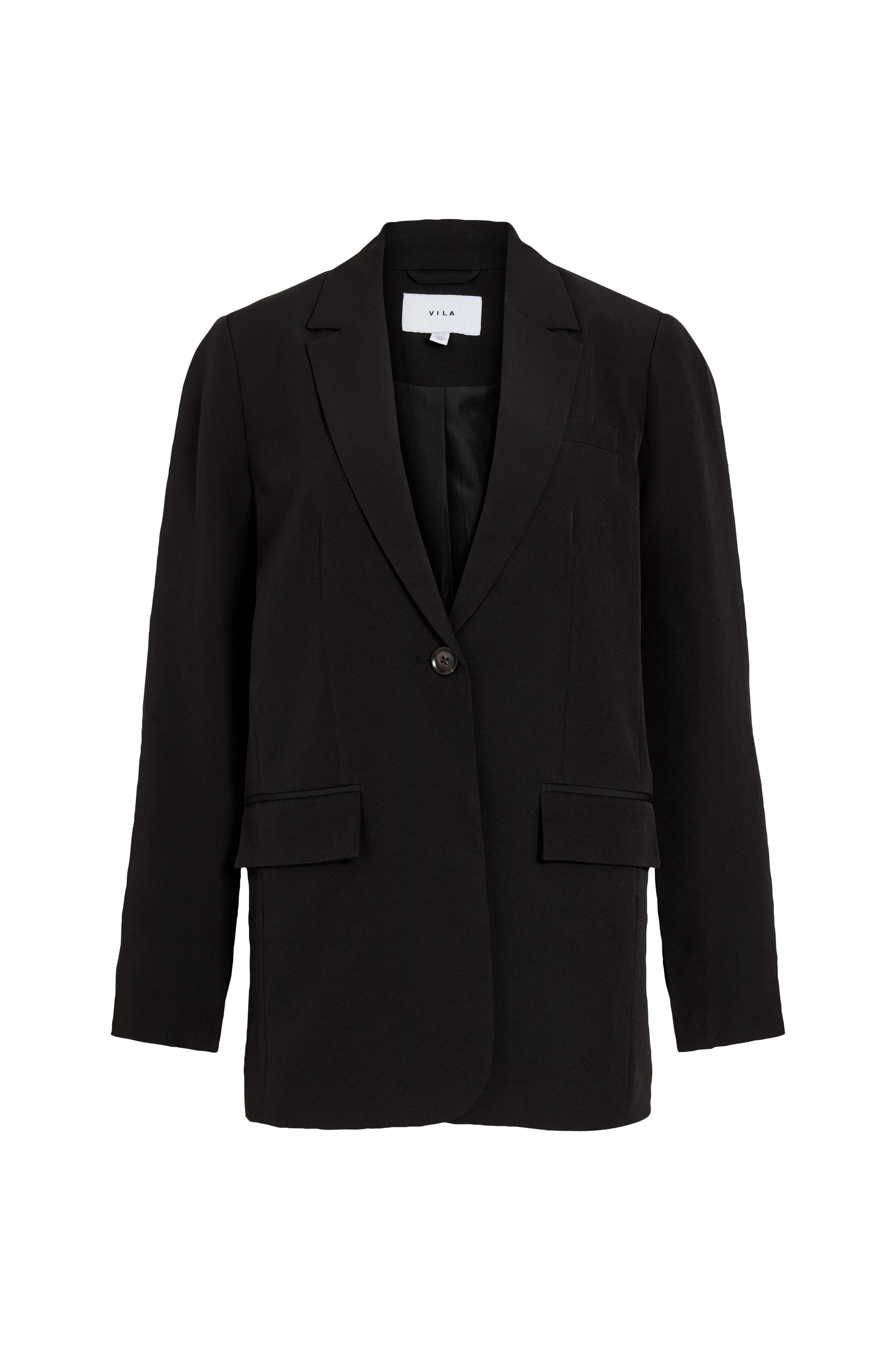 • Habitjakke med krave og revers• Skjulte knapper langs ærmerne• Knaplukning• Tekstilforing• En snydelomme• Paspolerede lommer med låg• Længde: 74 cm i størrelse 36