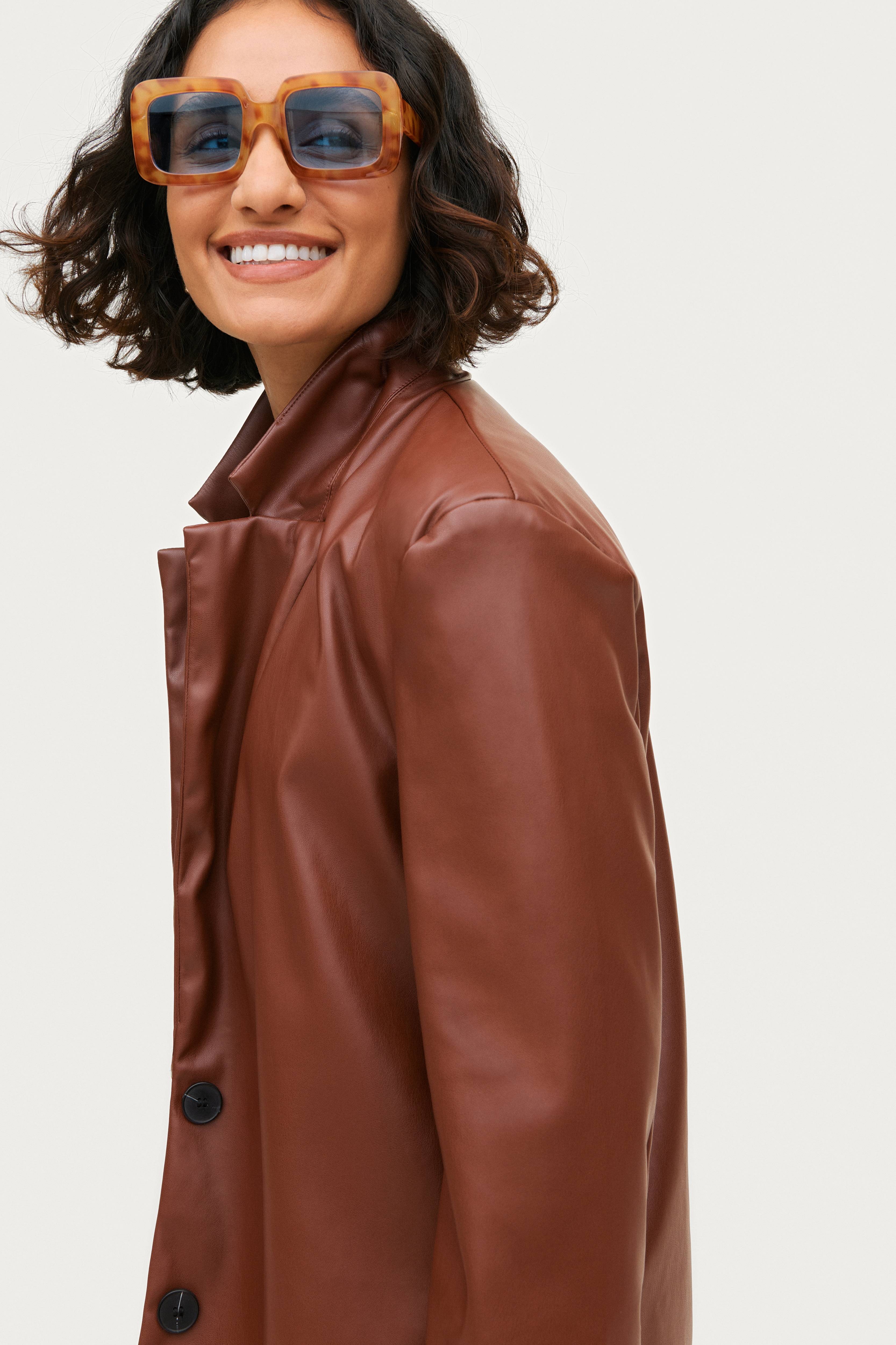 • Habitjakke i imiteret læder• Blød overflade• Lukning med to knapper• Længde: 75 cm i størrelse 36