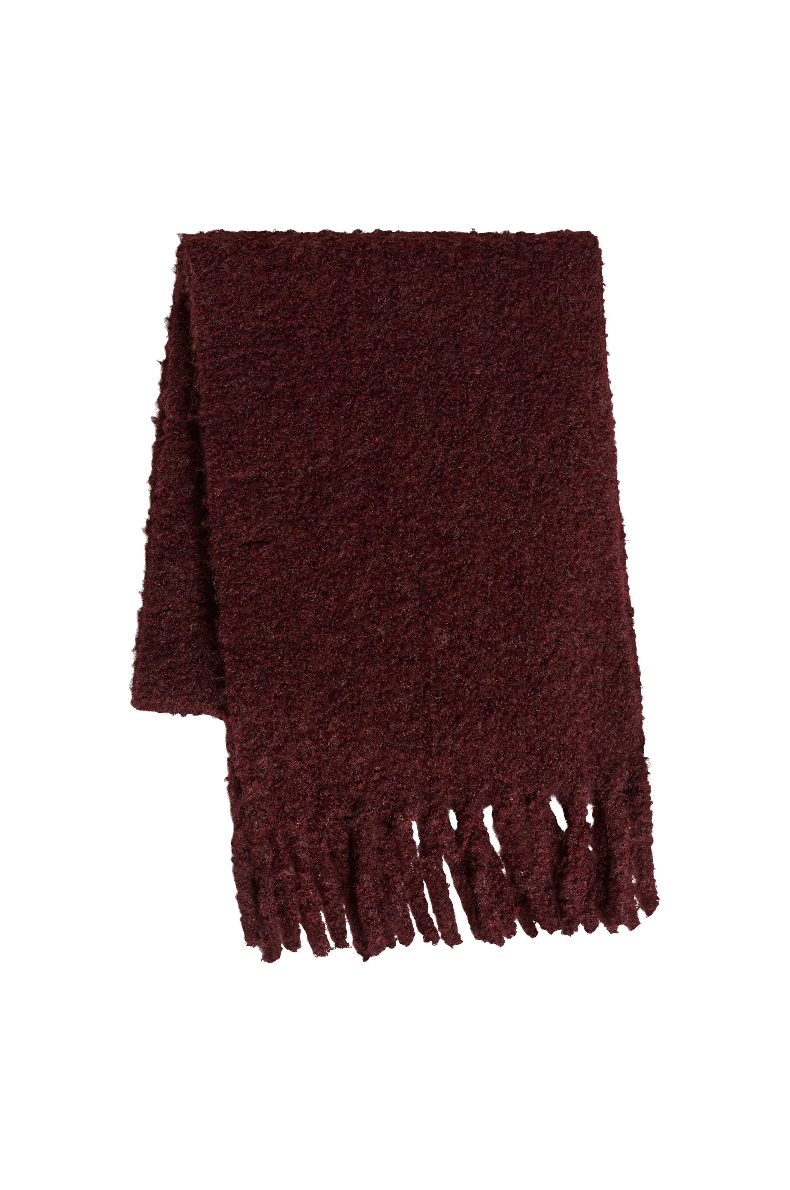 • Blødt halstørklæde i bouclé• Frynser på afslutningerne