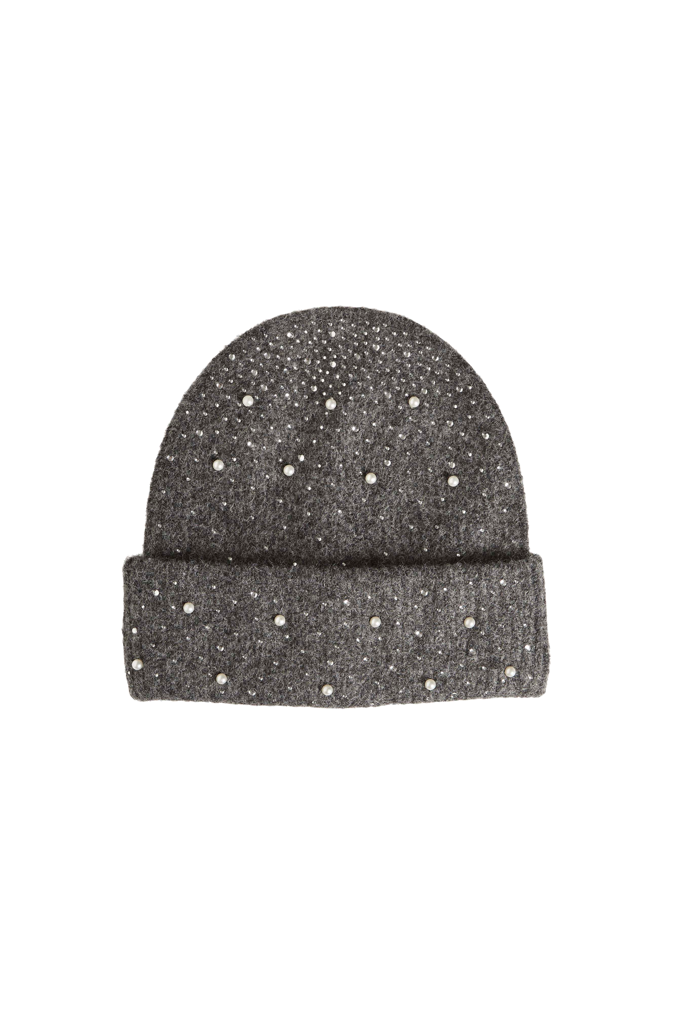 • Blød, strikket hue i uldblanding• Foldet søm• Rhinsten og perler hele vejen rundt