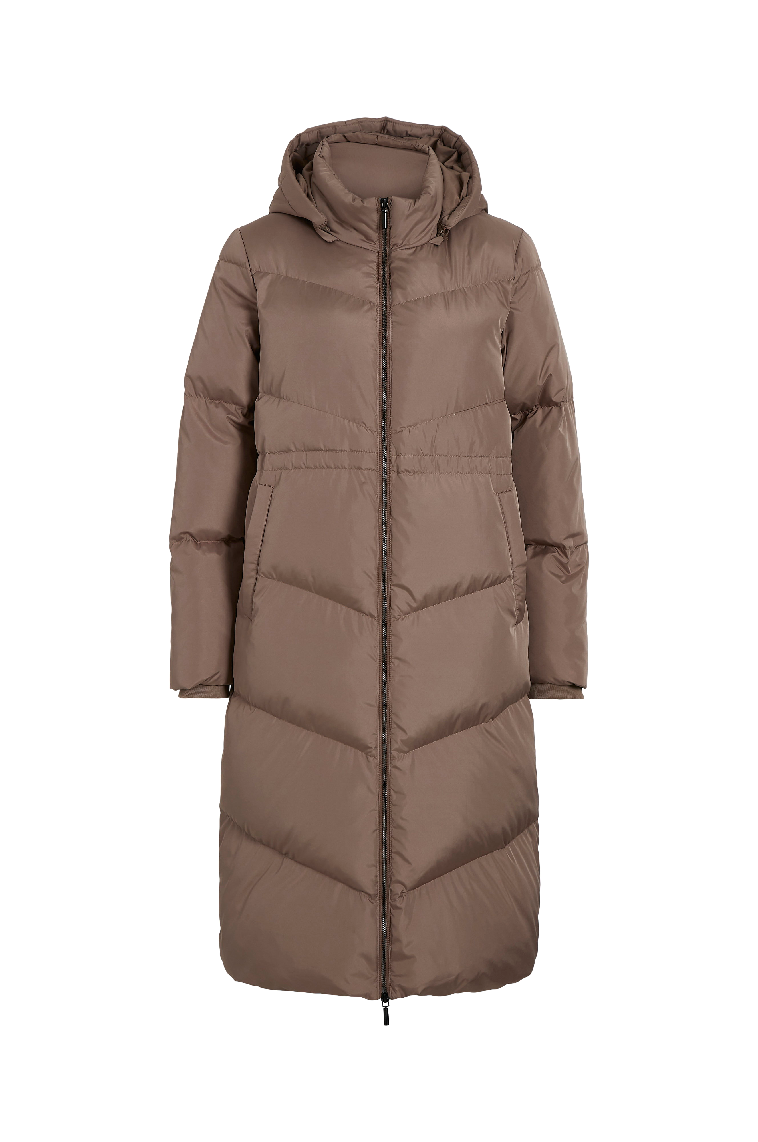 • Lang dunjakke med aftagelig hætte• To-vejs lynlås• To fleeceforede lommer med trykknap• Ribmanchetter ved manchetterne• Indvendig træksnørre ved taljen• Længde: 112 cm i størrelse 36