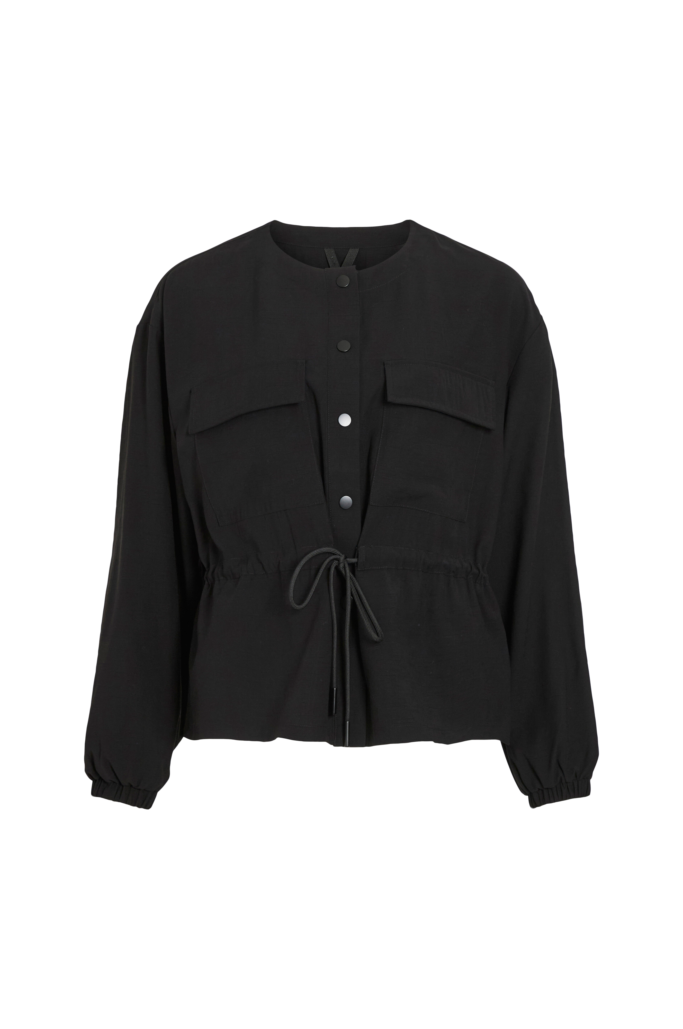 • Tynd jakke i viskoseblanding• Rund hals• Trykknapper• Træksnørre ved taljen• To brystlommer med lommelåg• Elastik ved manchetterne• Længde: 60 cm i størrelse 36