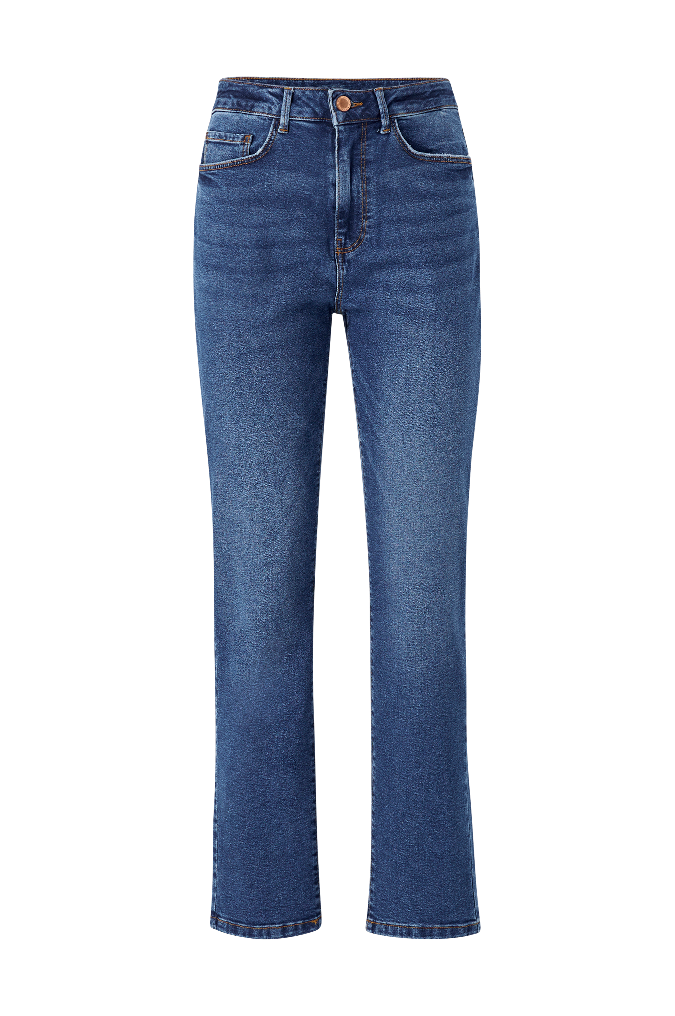 • Femlommemodel i strækdenim • Høj talje • Lige ben • Gylp med lynlås • Produktet indeholder genanvendt bomuld, der er fremstillet af restprodukter eller fra brugt materiale. Med genanvendt bomuld kræves færre kemikalier og mindre vand til produktionen.