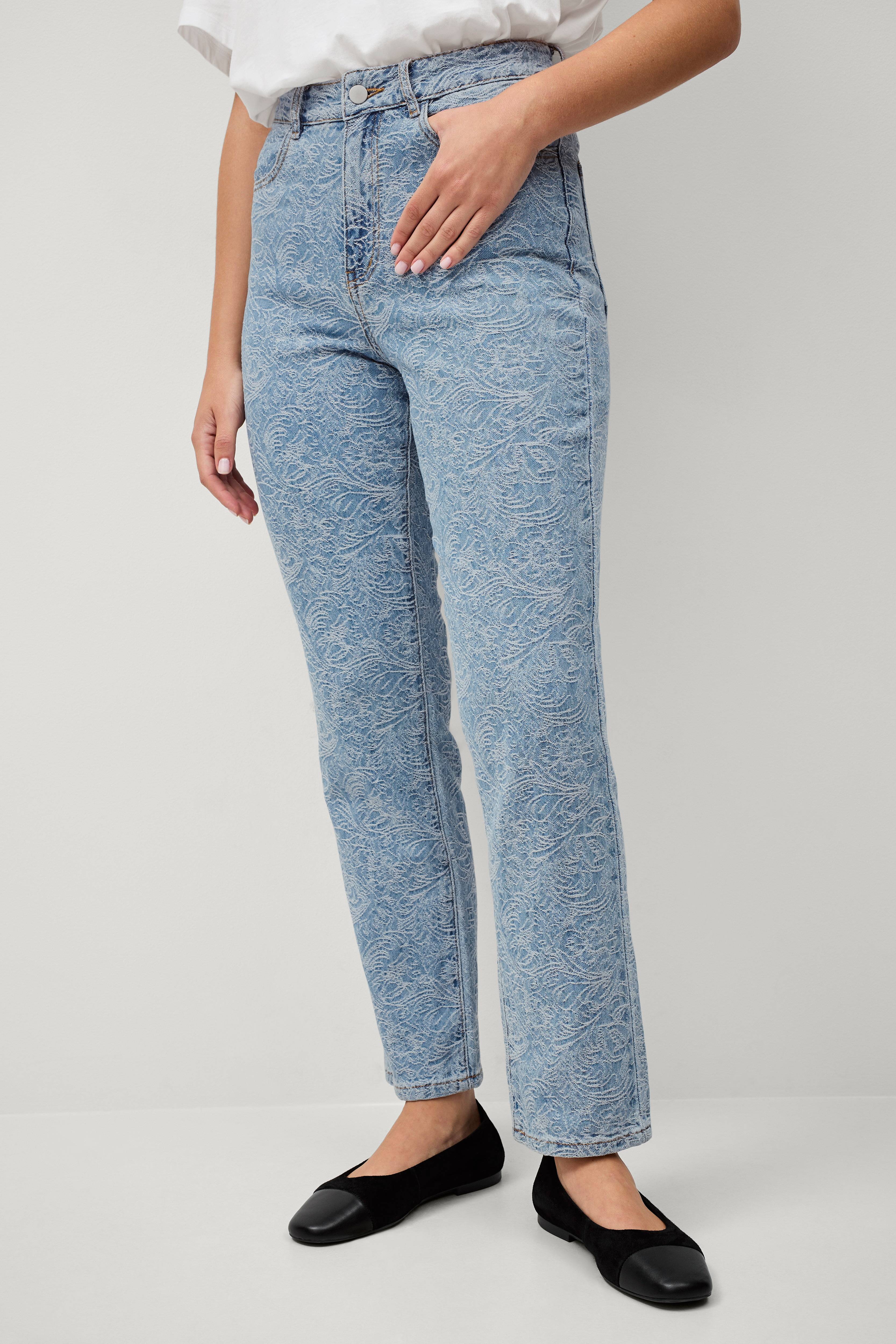 • Jeans med broderi hele vejen rundt• To lommer foran• To baglommer• Gylp med lynlås• Fremstillet af bomuldsdenim