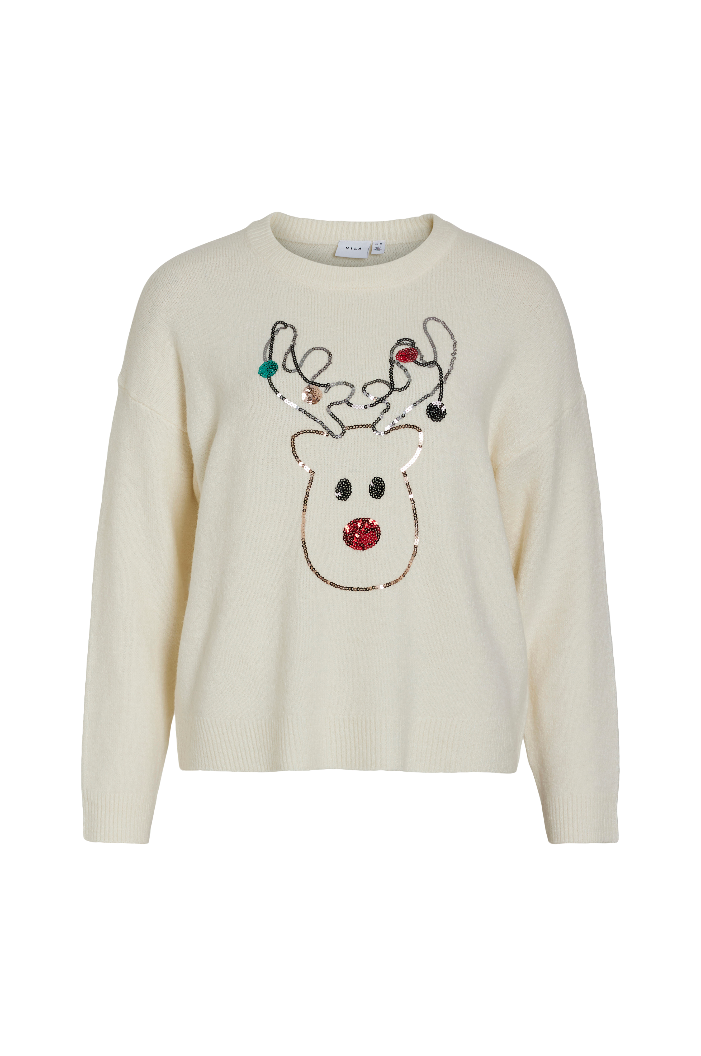 • Lige, glatstrikket model med broderede pailleter foran• Halsudskæring med ribmanchet• Nedsænket skulder med langt ærme• Ribstrik nederst og ved manchetterne