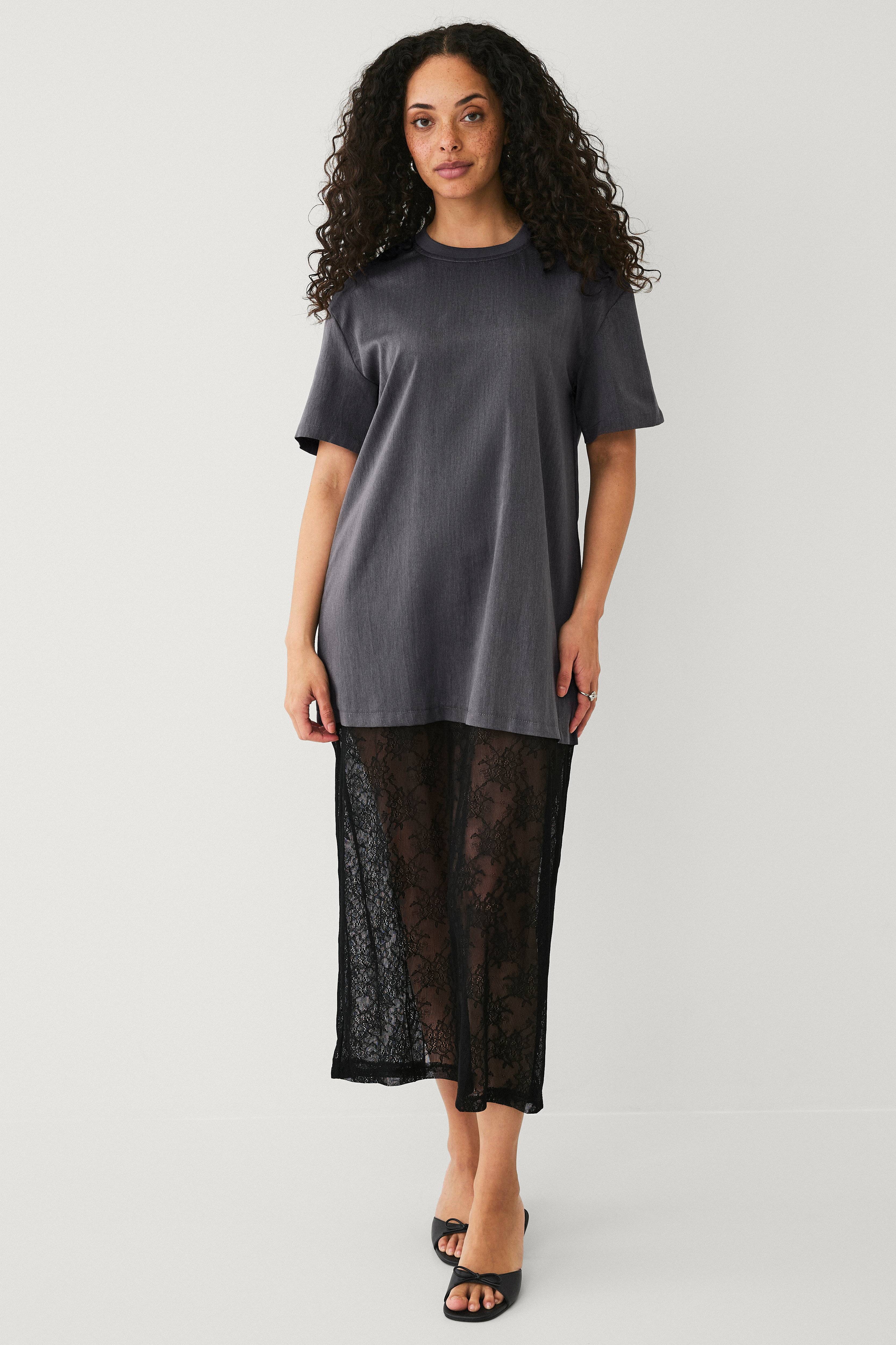 Modellen er 174 cm høj og bærer en str. 36