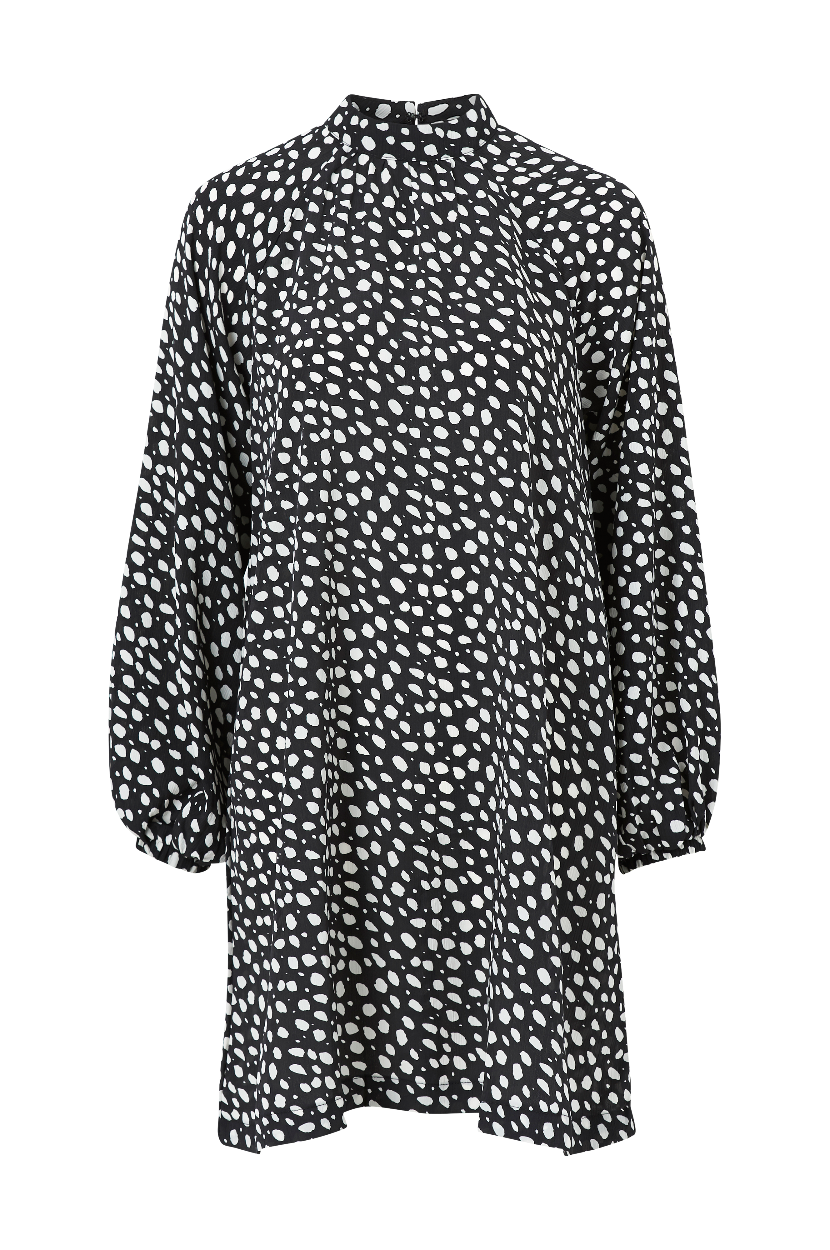 Kjole viBella L/S Dress i A-formet model med vide ærmer med elastiske ærmekanter og standkrave med hægte og malle i nakken og skjult lynlås i ryggen. I vævet kvalitet med glans. Længde ca. 91 cm i str. 36.