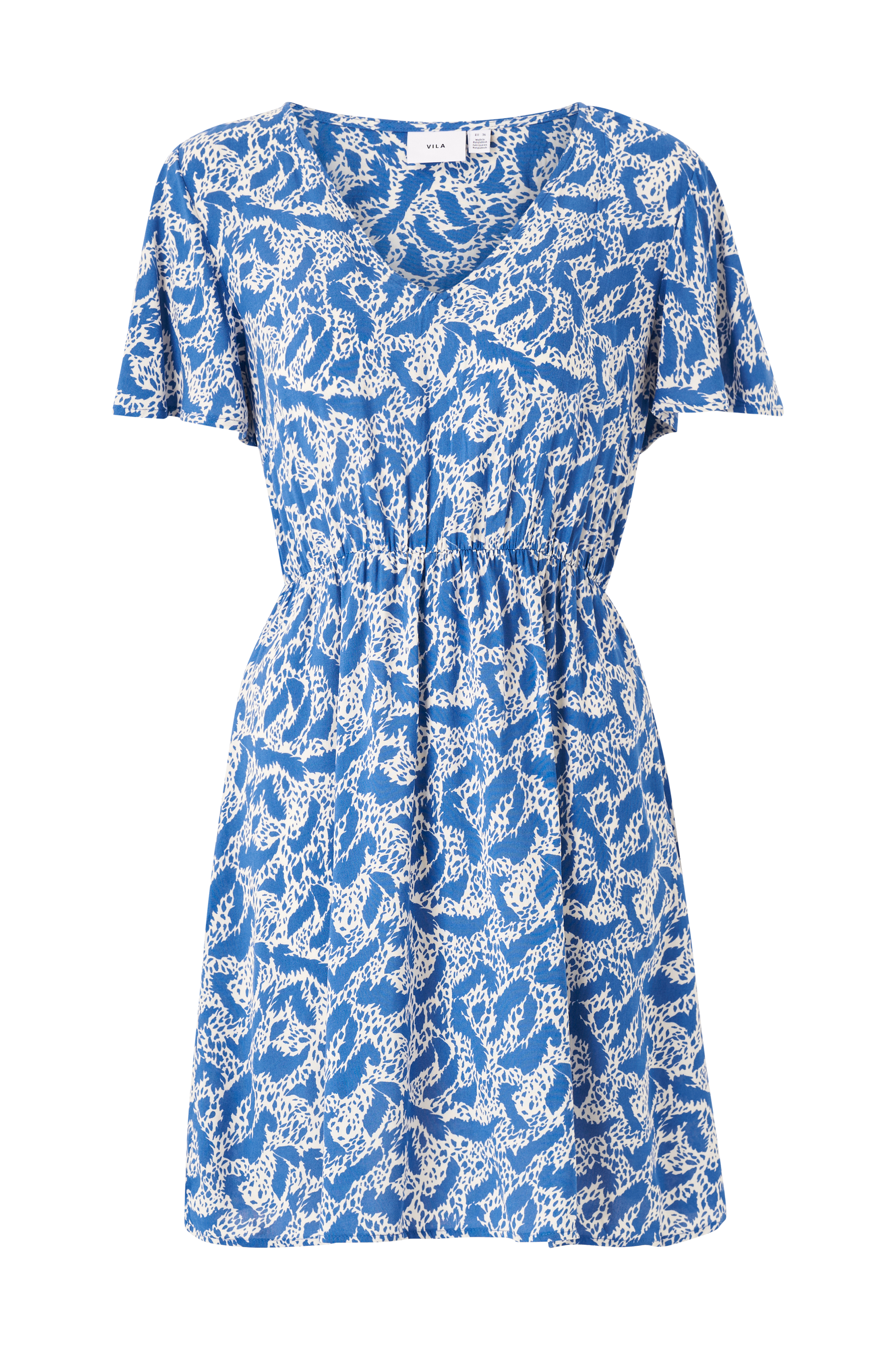 • V-udskæring• Korte sommerfugleærmer• Elastisk talje• Længde: 90 cm i størrelse 36