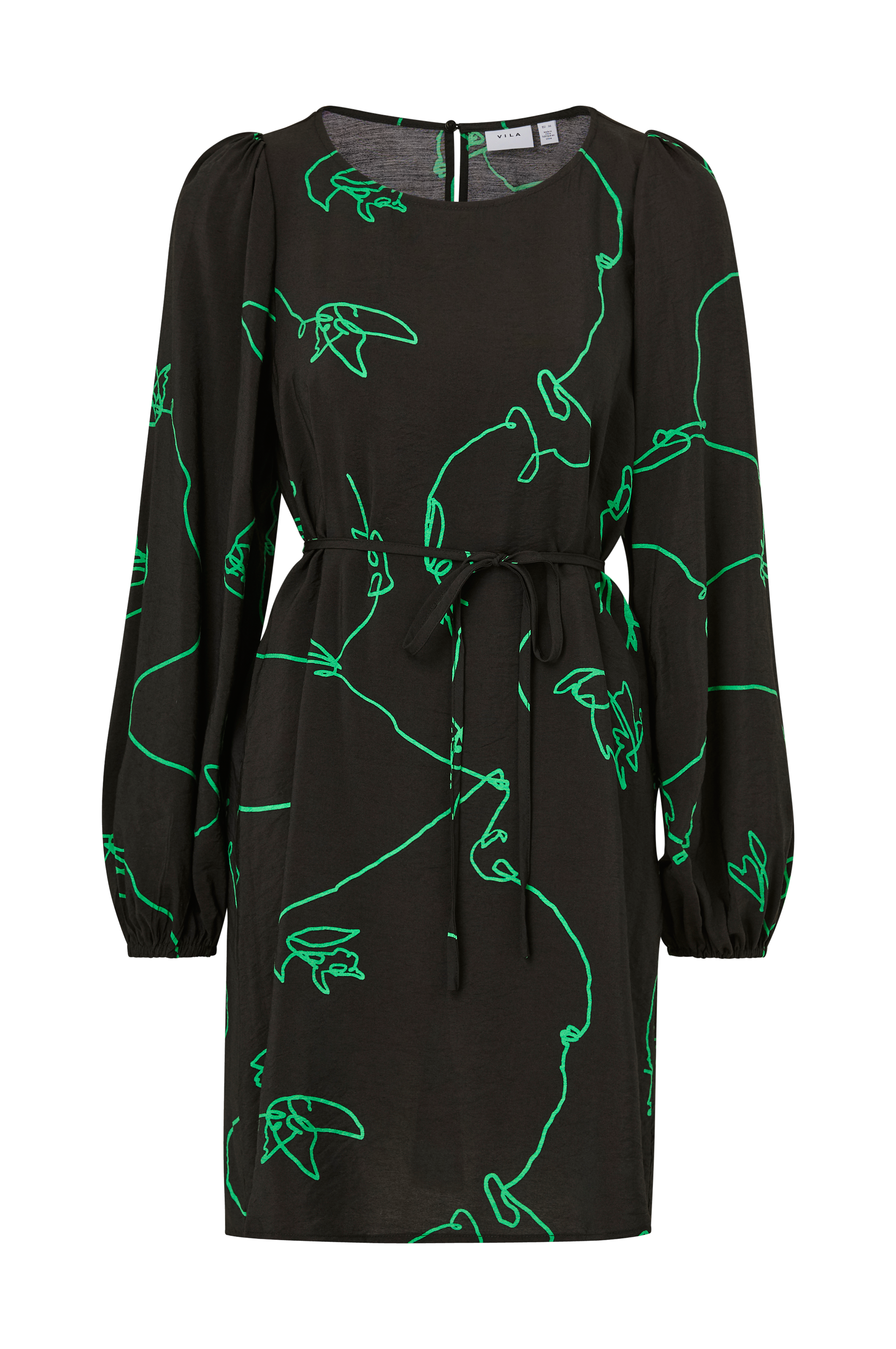 • Snørklet, grønt mønster• Ballonærmer med elastiske manchetter• Ventilation med knap i nakken• Længde: 88 cm i størrelse 36