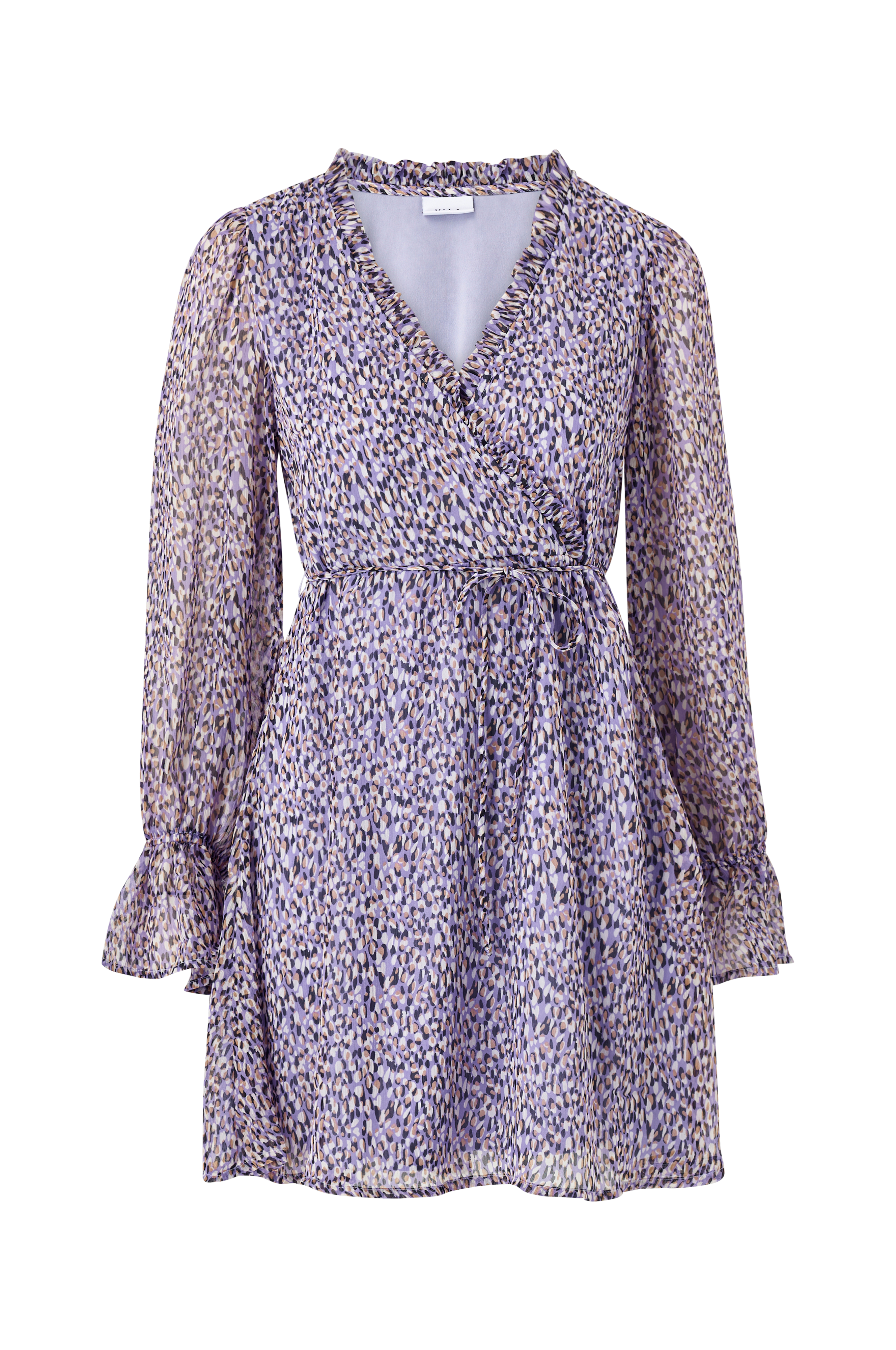 • Slå-om design på toppen med flæsekanter • Aftageligt, tyndt bindebælte • Elastisk bånd ved taljen • Trikotfor • Uforede ærmer med elastisk bånd og volant ved manchetterne • Længde: 87 cm i størrelse 36 • Produktet indeholder genindvundet materiale, som genbruges for at reducere mængden af affald samtidigt med at der ikke anvendes nye ressourcer.