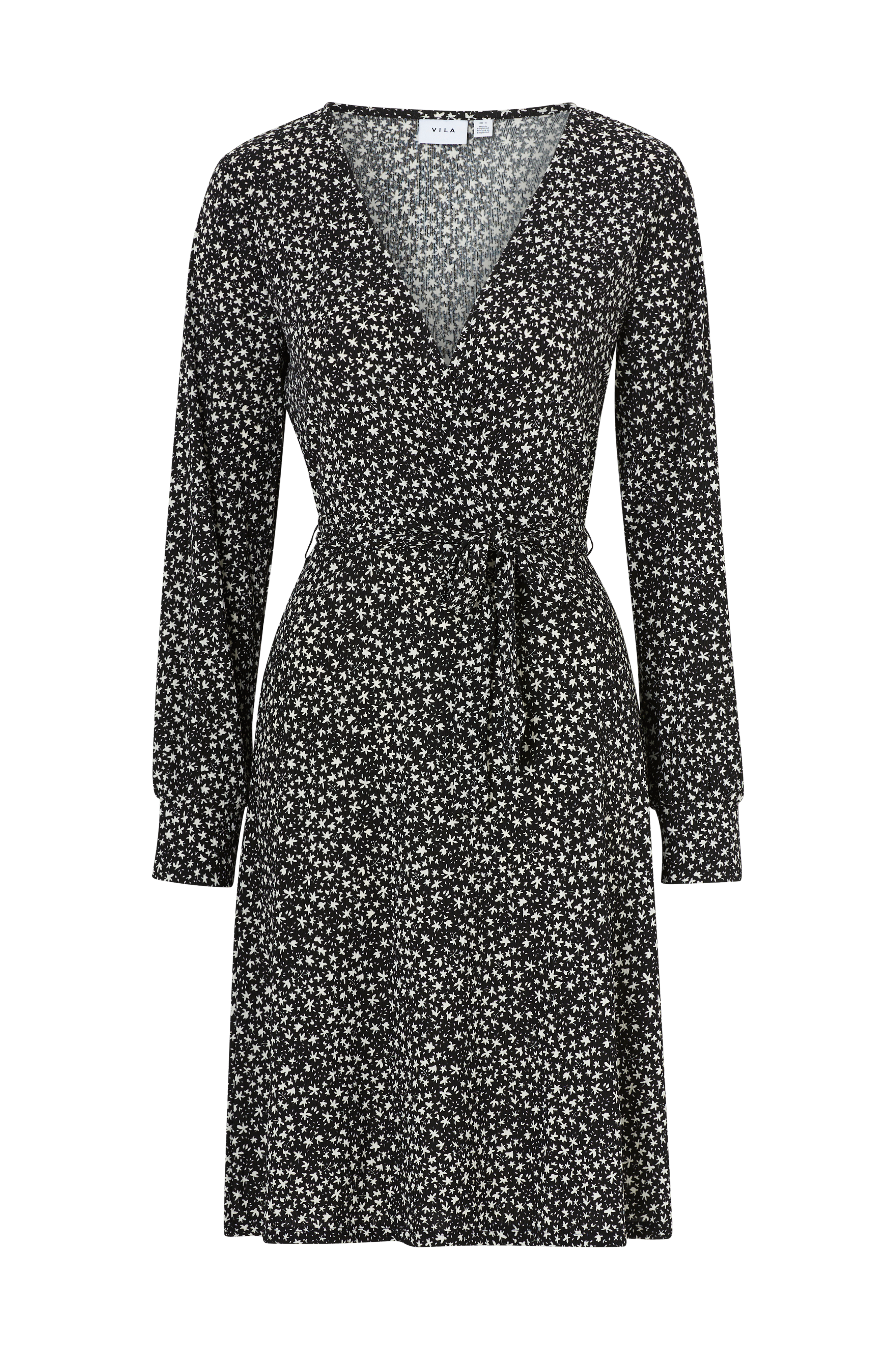 • Figurformede model i crepe jersey• Slå-om design på toppen• Langt ærme med påsyet kant ved manchetterne• Markeret talje med bæltespænde• Længde: 102 cm i størrelse S