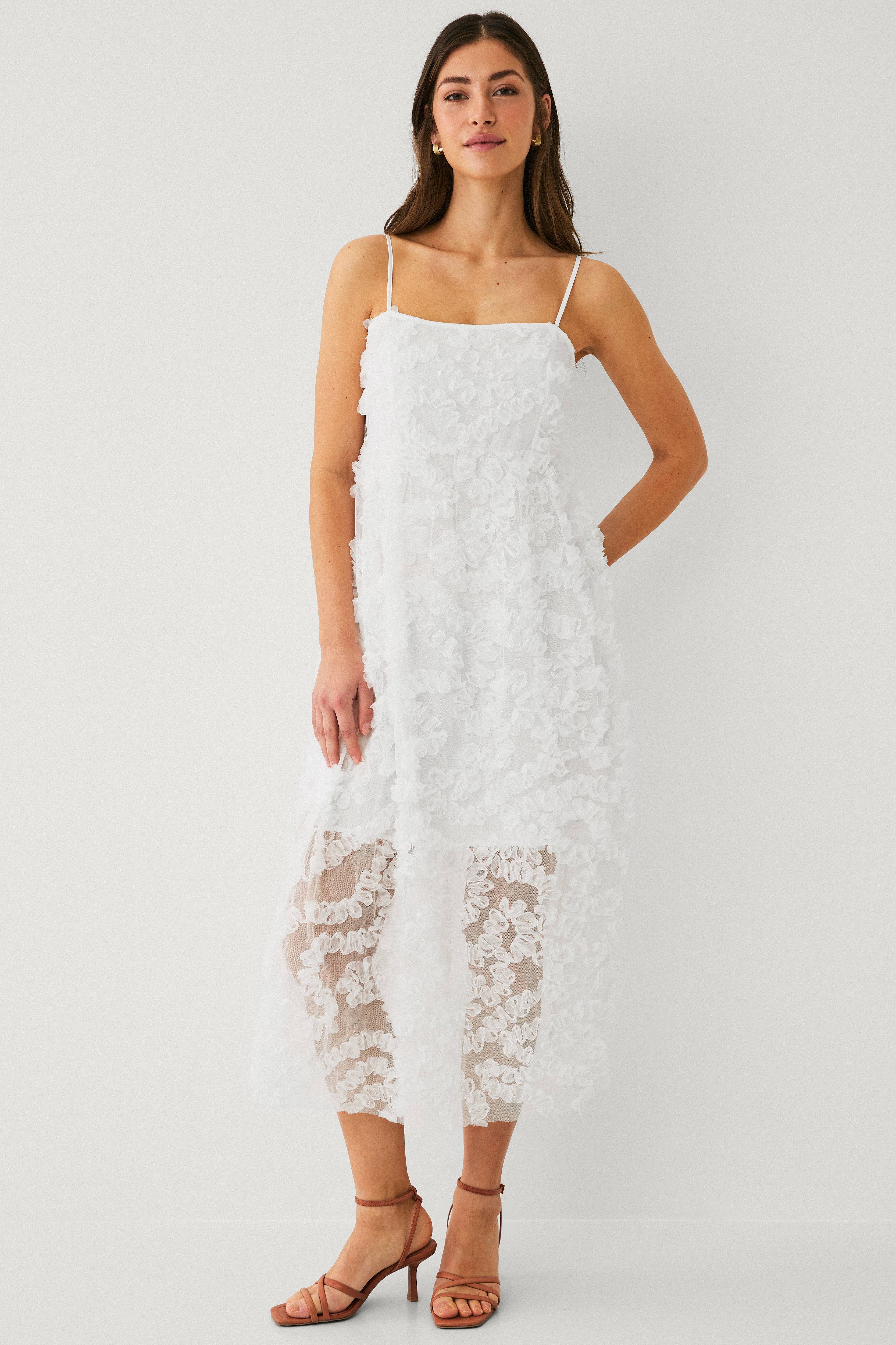 • Lang, ærmeløs model i mesh• Påsyede applikationer overalt• Tynde, justérbare skulderstropper• For ned til knæet• Længde: 124 cm i størrelse S