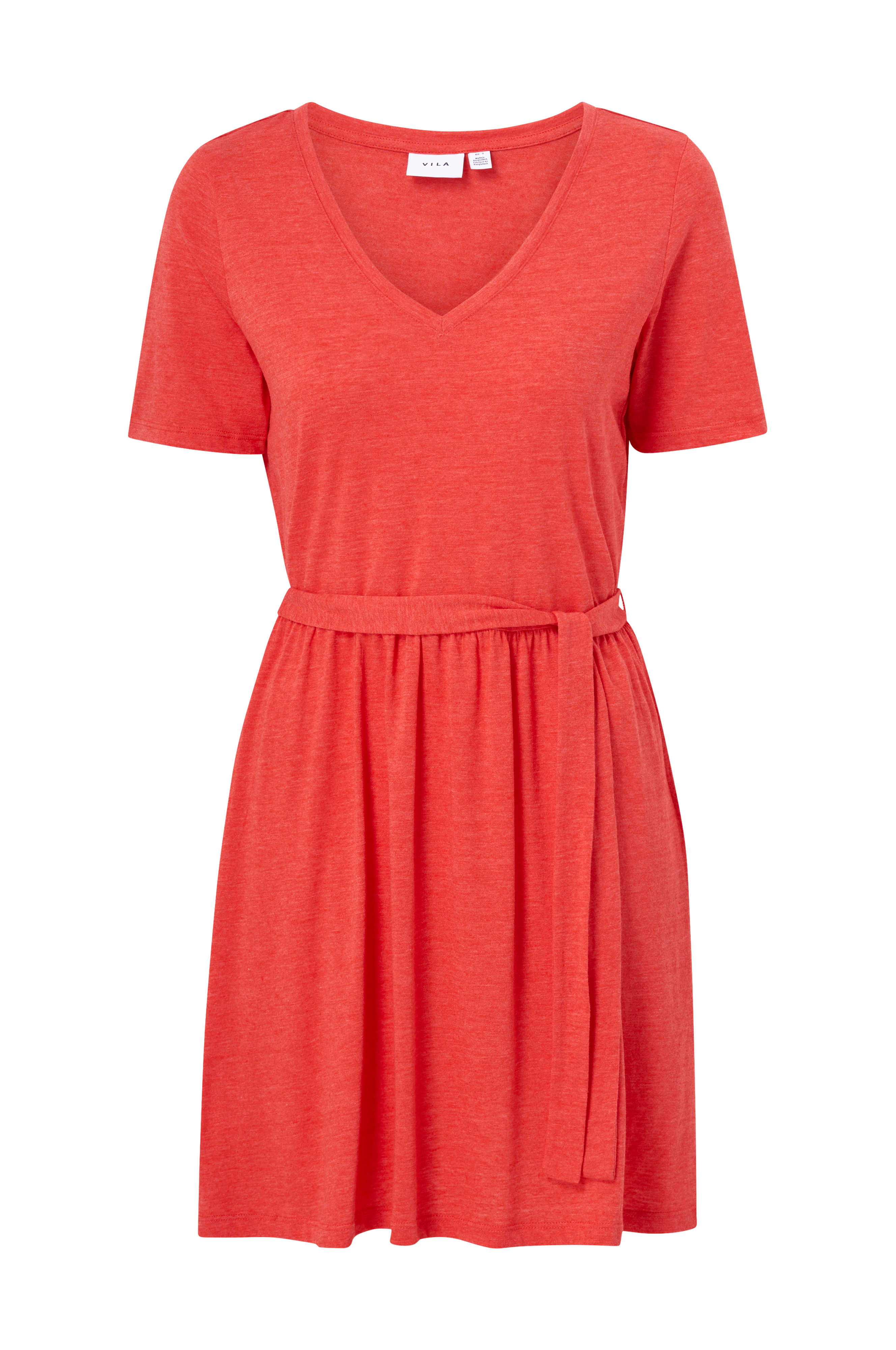 • Korte ærmer• V-udskæring• Rynket talje med bindebælte• Længde: 91 cm i størrelse S