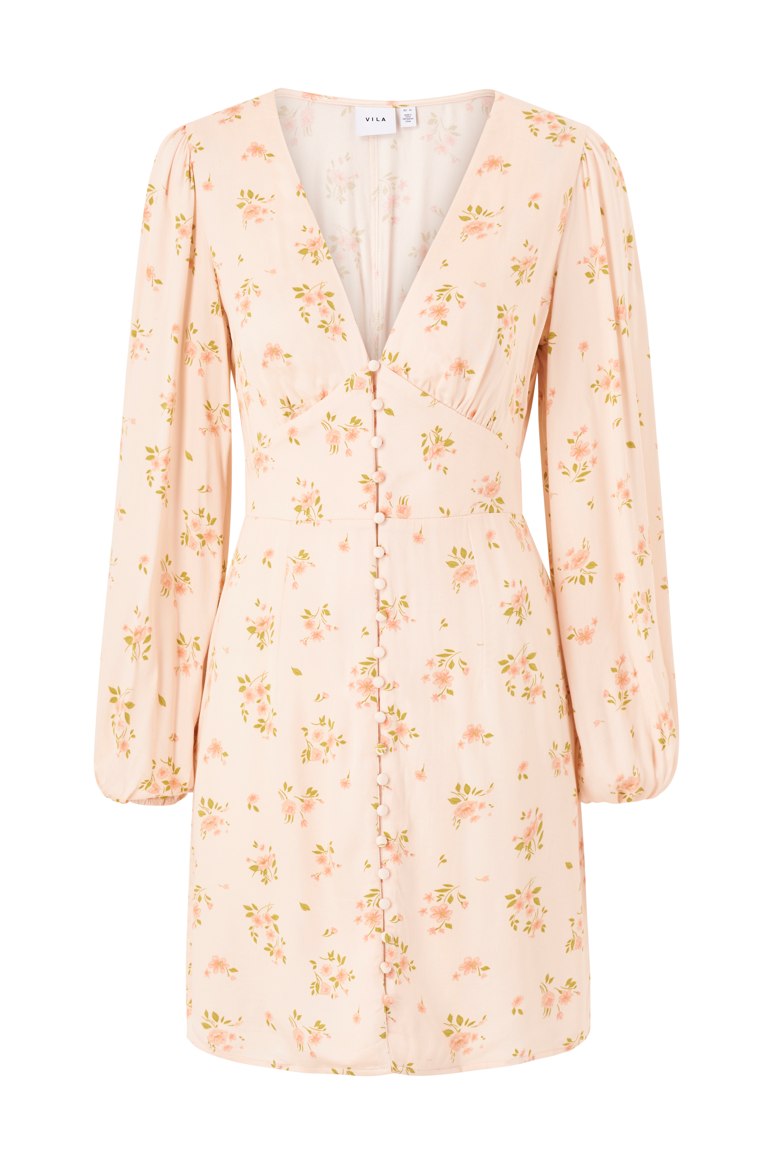 • Kort kjole i viskose• V-udskæring• Knapper foran• Ballonærmer med elastiske manchetter• Længde: 89 cm i størrelse 36