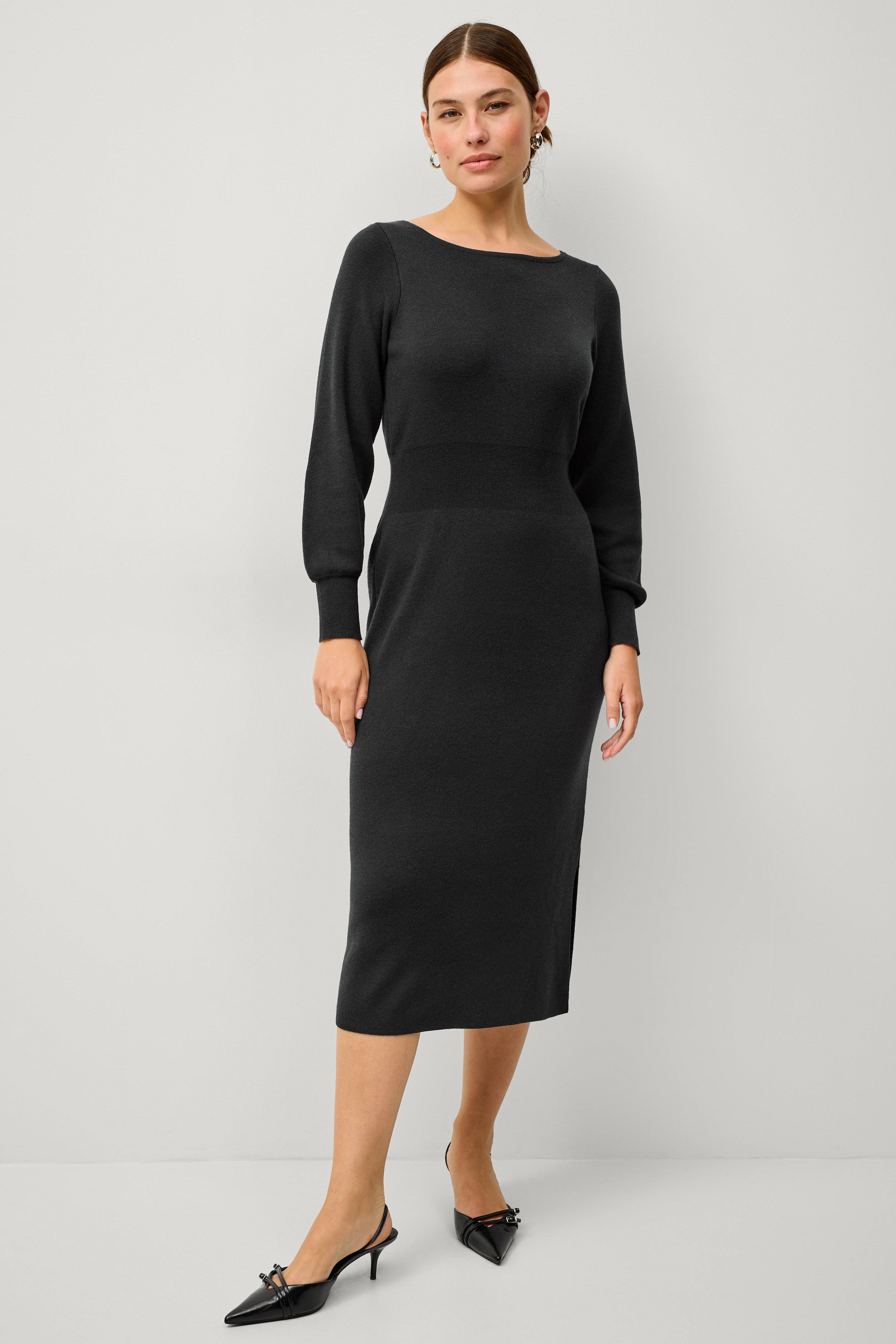 • Fintstrikket kjole• Blød, elastisk kvalitet• Let figursyet model• Bred Bådhals• Lange ærmer med ribmanchetter ved manchetterne• Slidser i siderne• Længde: 122 cm i størrelse S