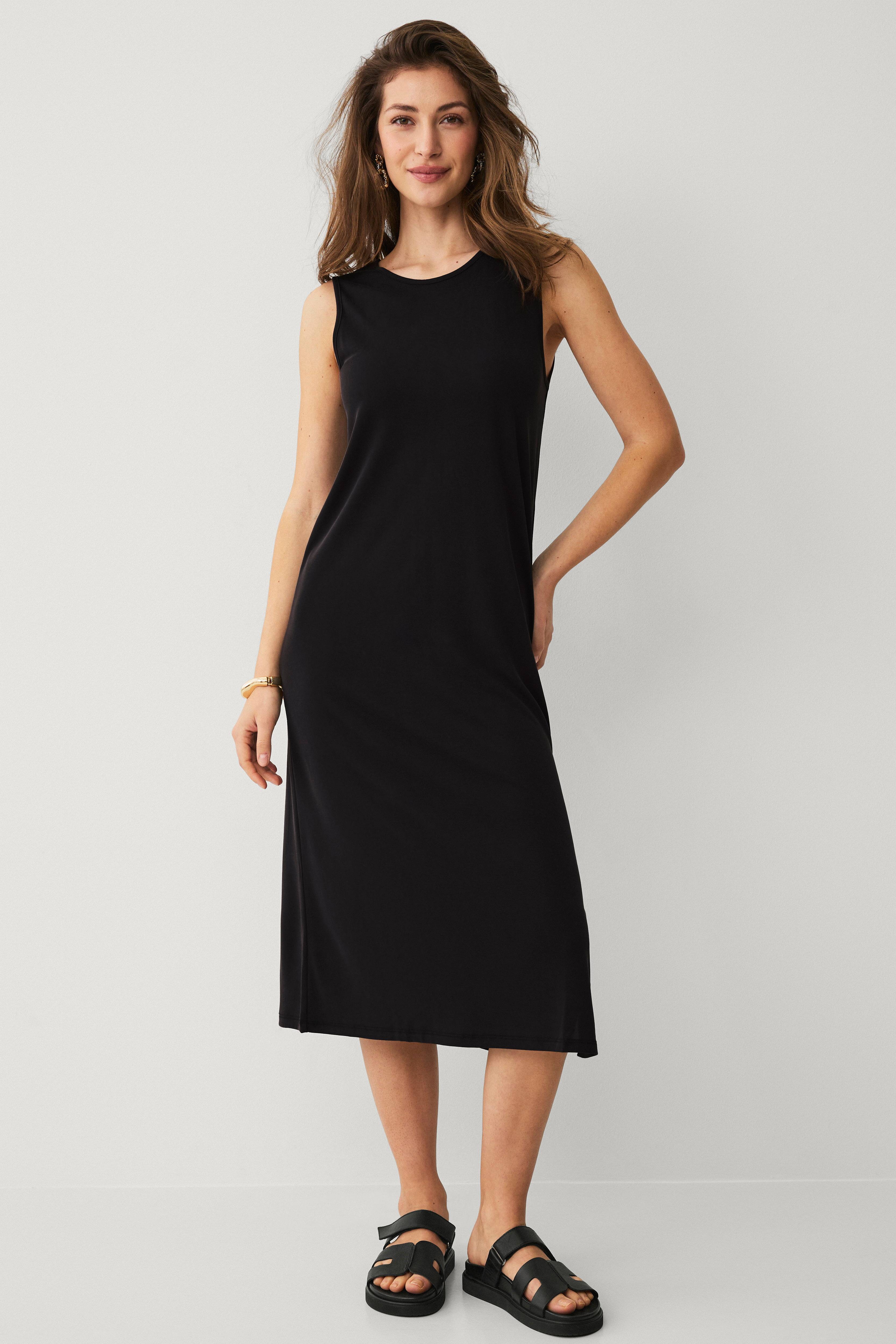 • Ærmeløs model i blød jersey• Rund hals• Slids nederst i den ene side• Længde: 116 cm i størrelse S
