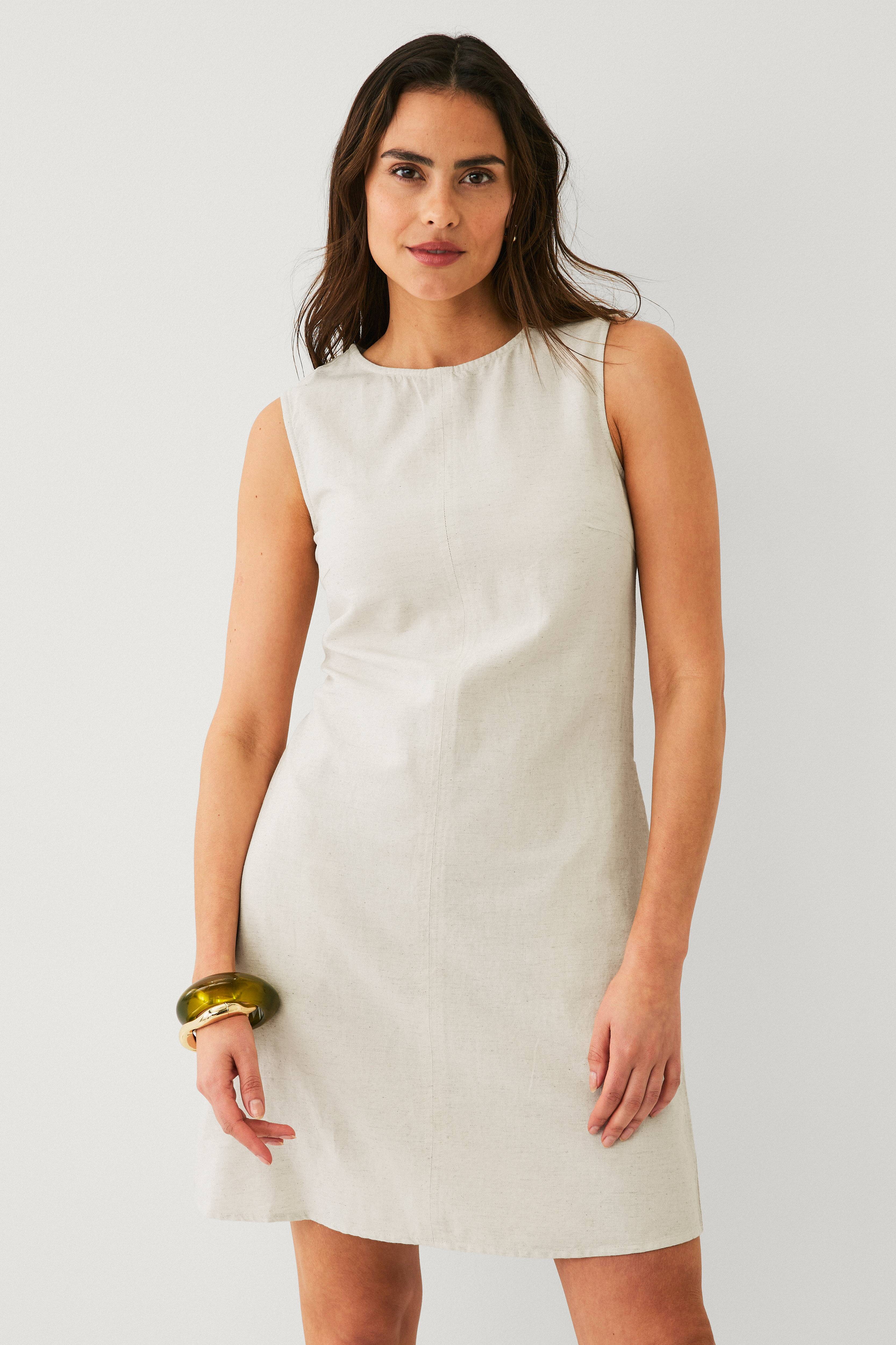 • Ærmeløs kjole• Rund halsudskæring• Ventilation med knap i nakken• Længde: 94 cm i størrelse 36