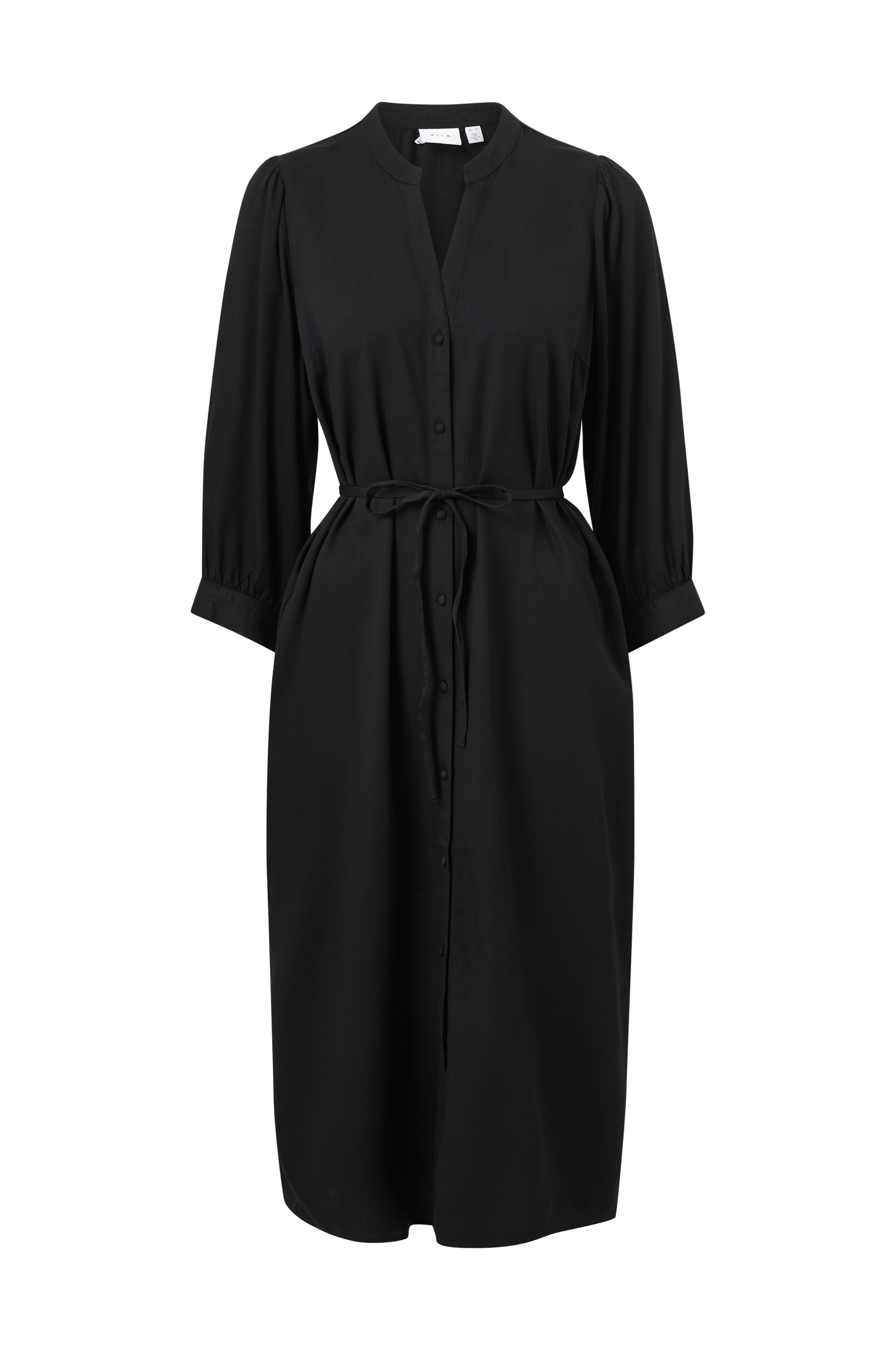 • Midikjole• V-udskæring• 3/4 lange ærmer med manchet• Tyndt bindebånd ved taljen• Længde: 116 cm i størrelse 36