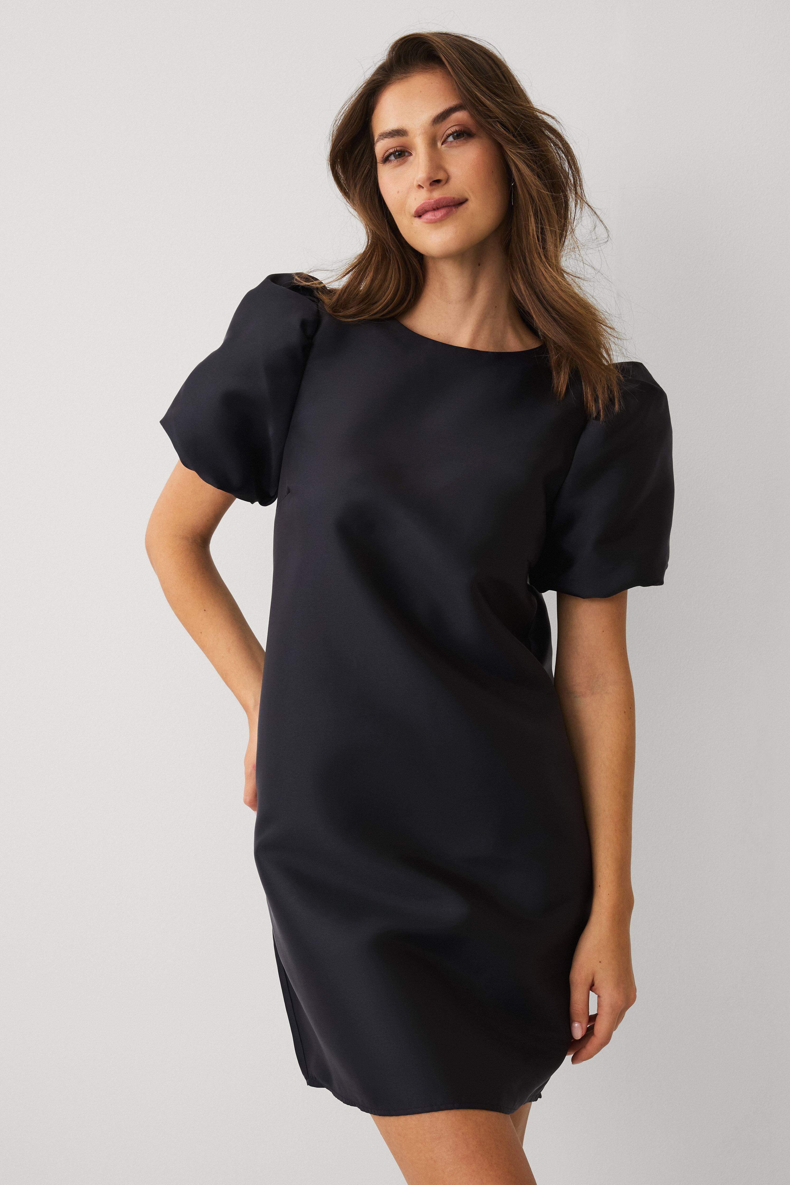 • Kort, lige model i satin• Rund hals med knap i nakken• Korte ballonærmer• Længde: 86 cm i størrelse 36