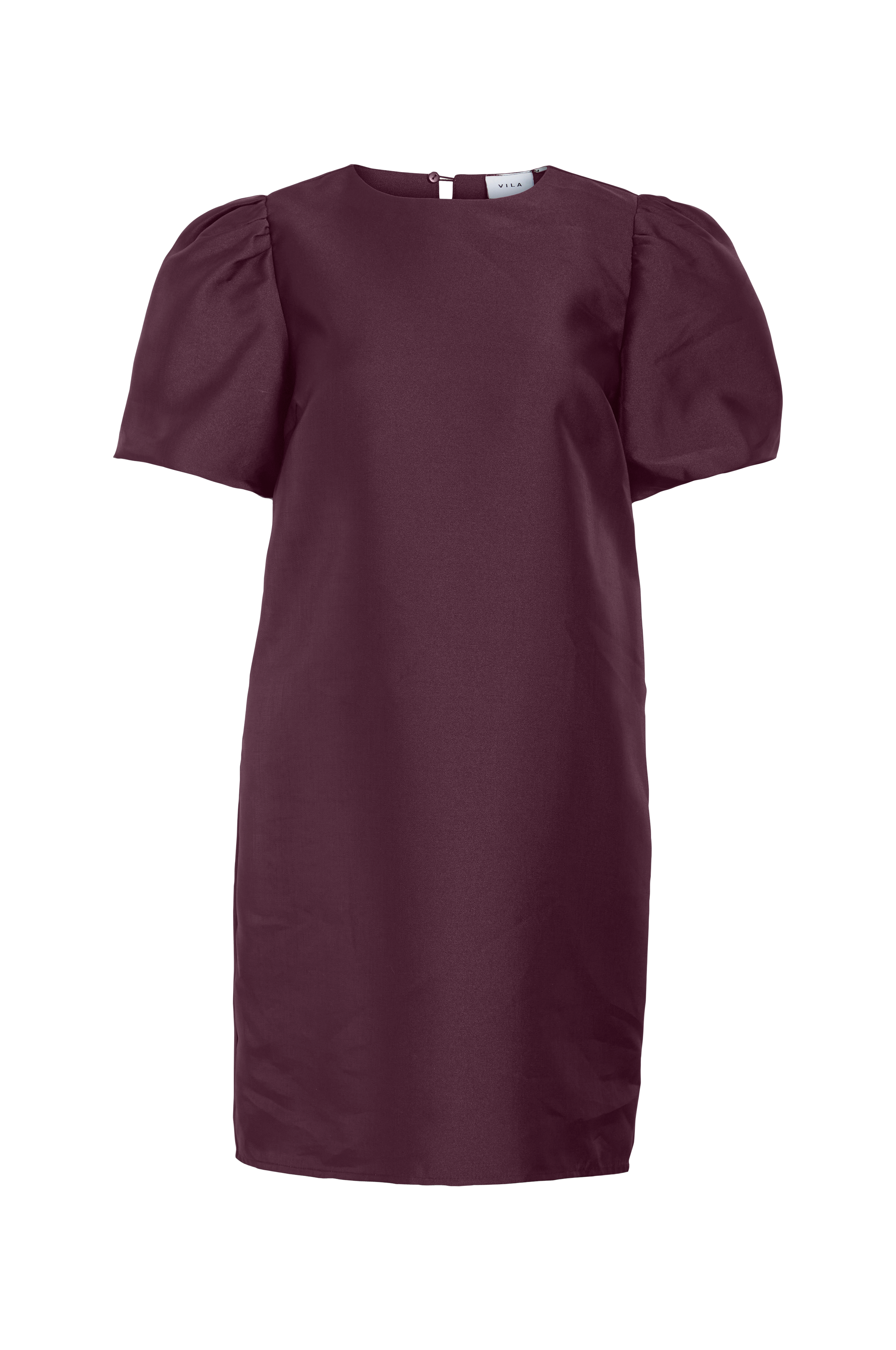 • Kort, lige model i satin• Rund hals med knap i nakken• Korte ballonærmer• Længde: 86 cm i størrelse 36