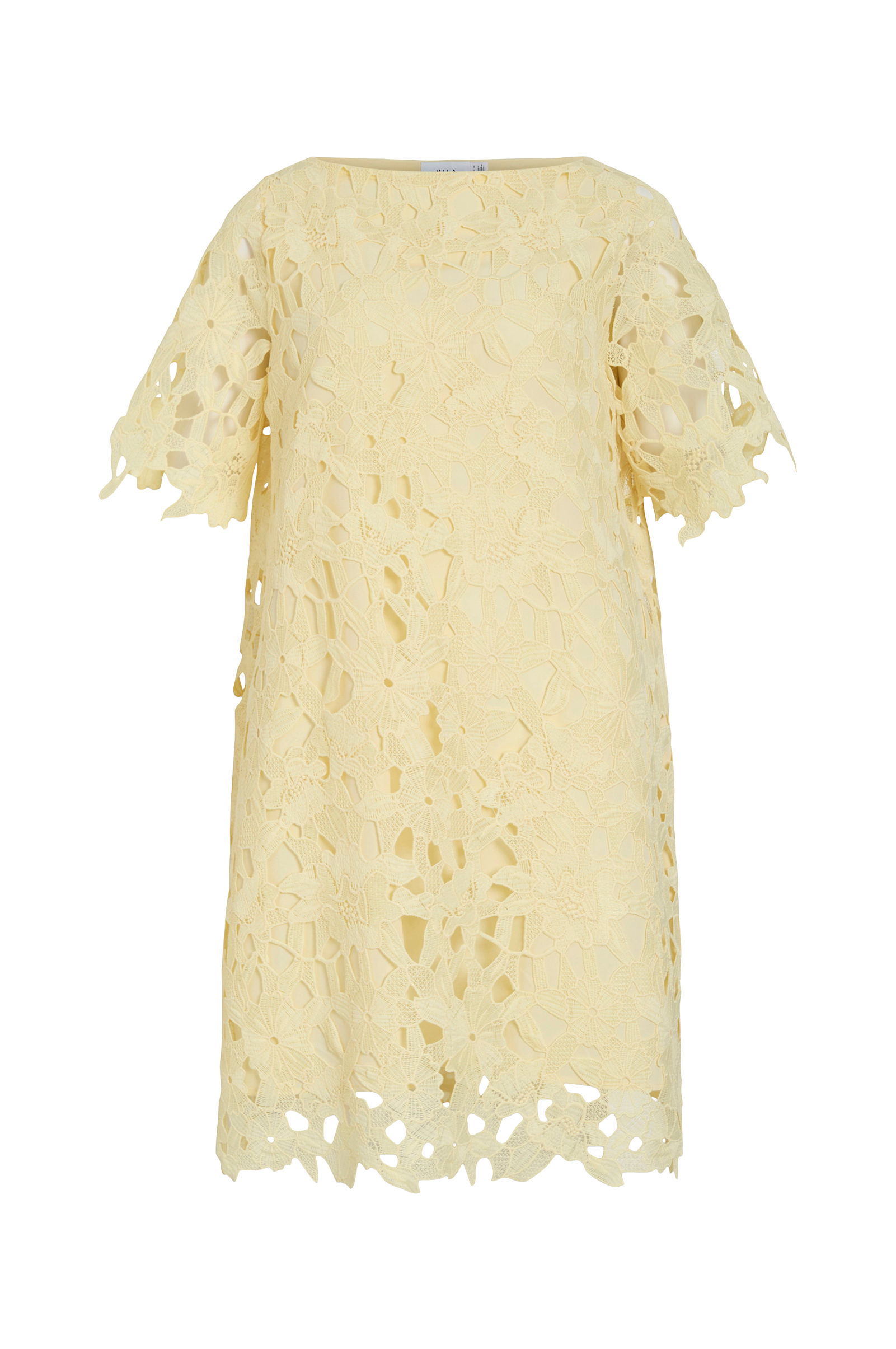 • Foret kjole med broderet blonde• Bådudskæring• Korte, uforede ærmer• Længde: 100 cm i størrelse 36