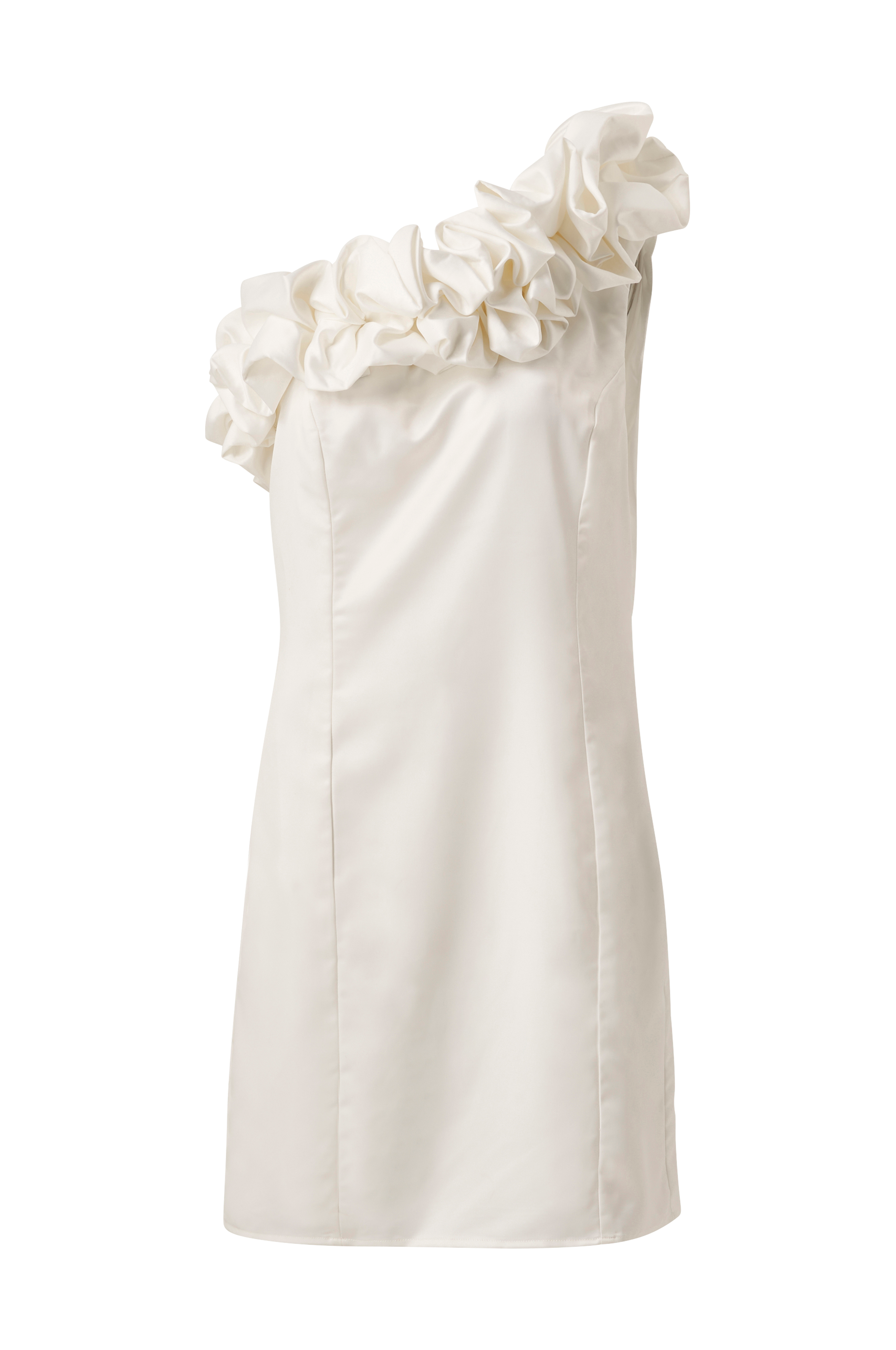 Kort festkjole med bar skulder og kropsnær pasform. Dekorativ, ruche med volumen foroven. Silikonekant på indersiden foroven. Længde ca. 97 cm i str. 38.