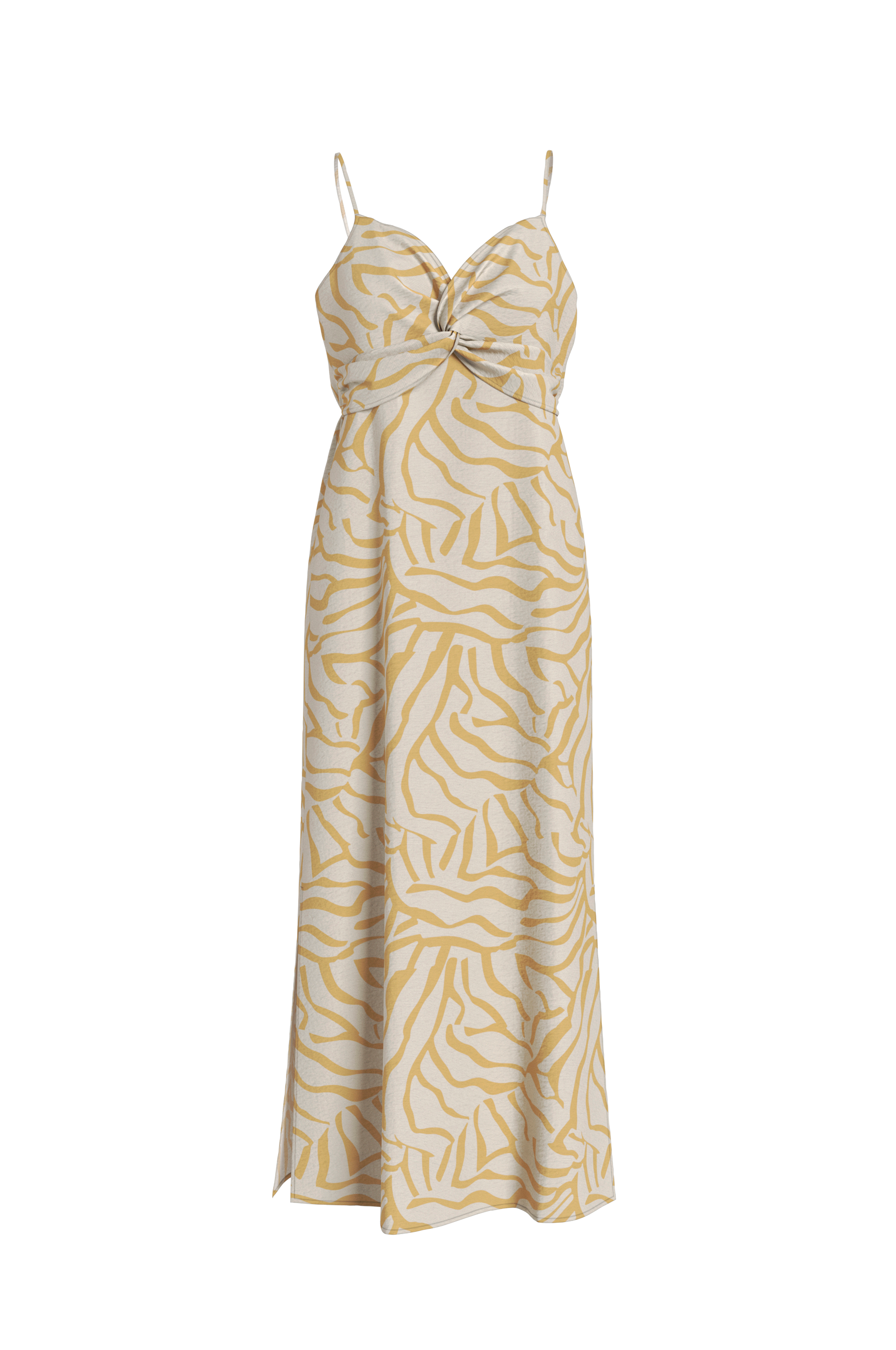 • Figurformede model med drapering på toppen• Halsudskæring med slå-om design• Lige snit, elastisk ryg på toppen• Justérbare, tynde skulderstropper• Høje slidser nede i siderne• Længde: 129 cm i størrelse 36