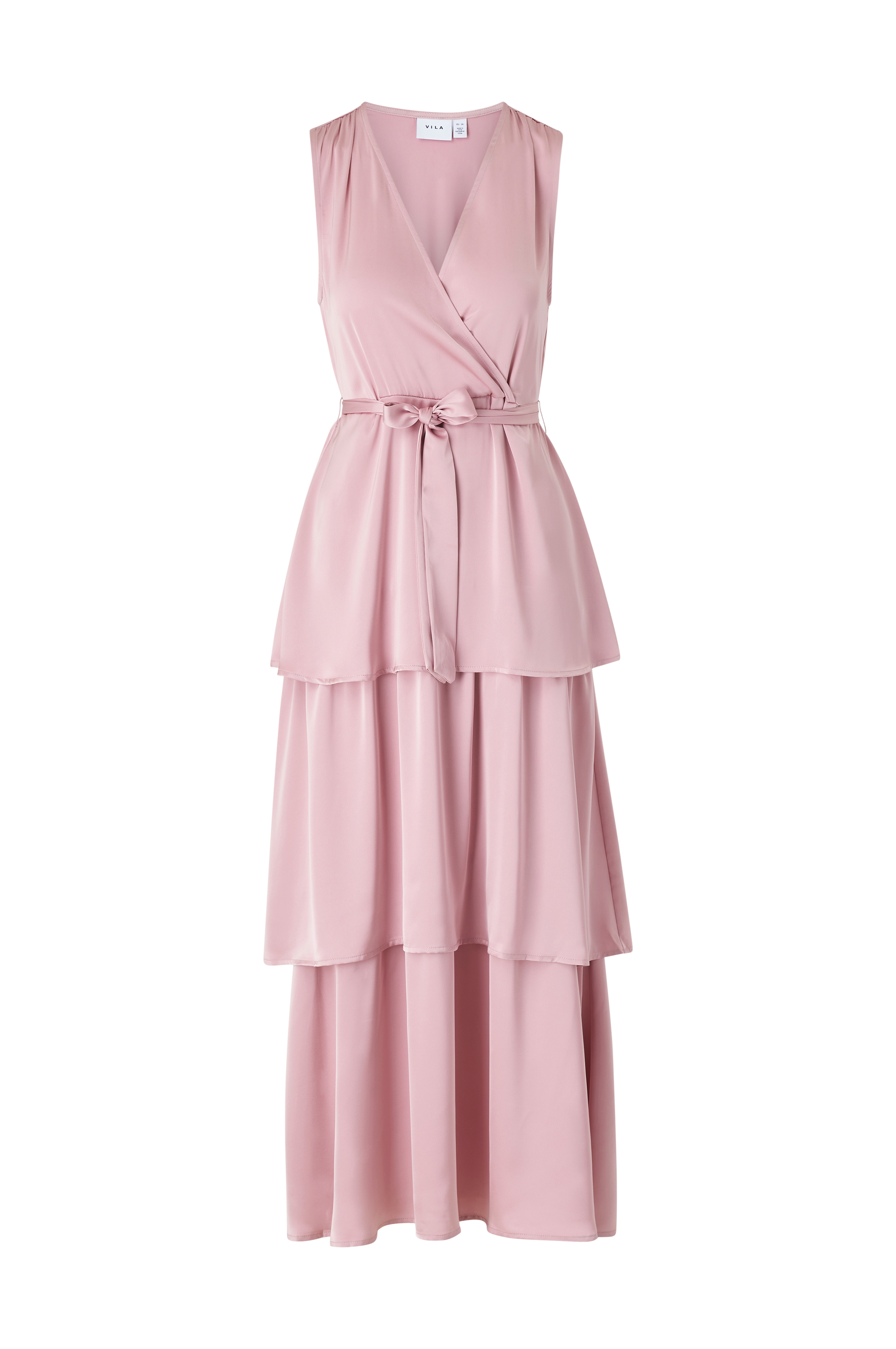 Den er smukt lyserød og passer godt i størrelsen. Helt okay. Men så mærkeligt syet sammen. Under flæserne er der et andet tyndere gennemsigtigt stof. Som desværre får kjolen til at se…