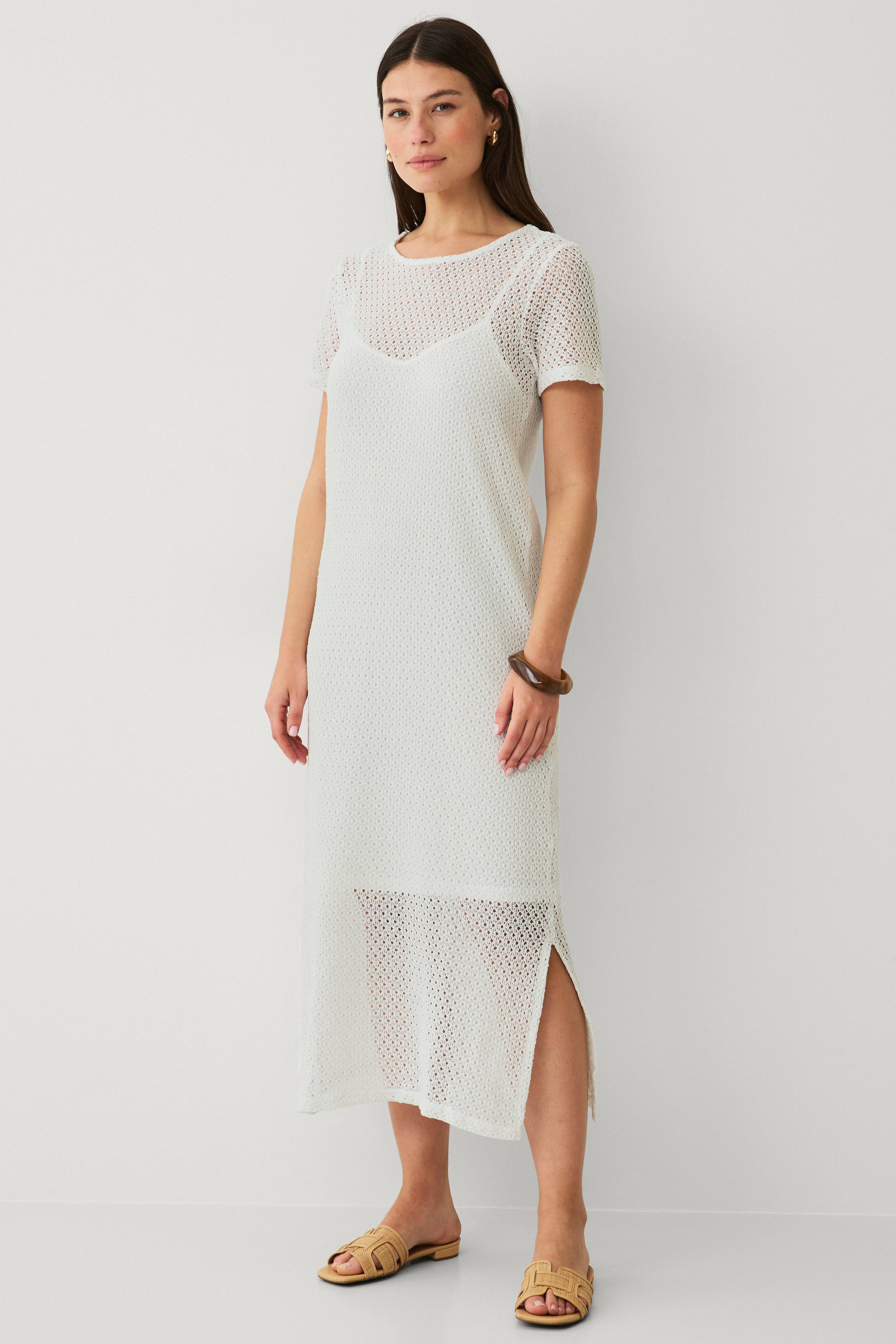 • Blondemønstret model• Rund hals• Kort ærme• Slids nede i siderne• Udtagelig underkjole med tynde, justérbare skulderstropper• Længde: 130 cm i størrelse S