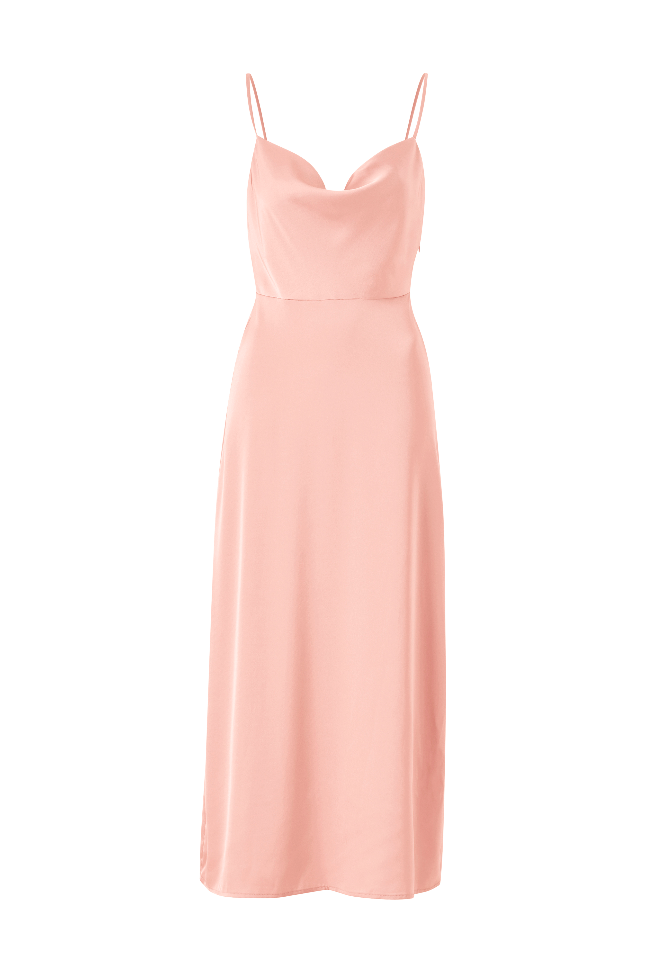 • Fuld længde, elegant kjole i satin• Tynde, justérbare skulderstropper• Dyb ryg• Skjult lynlås i siden• Længde: 134 cm i størrelse 36