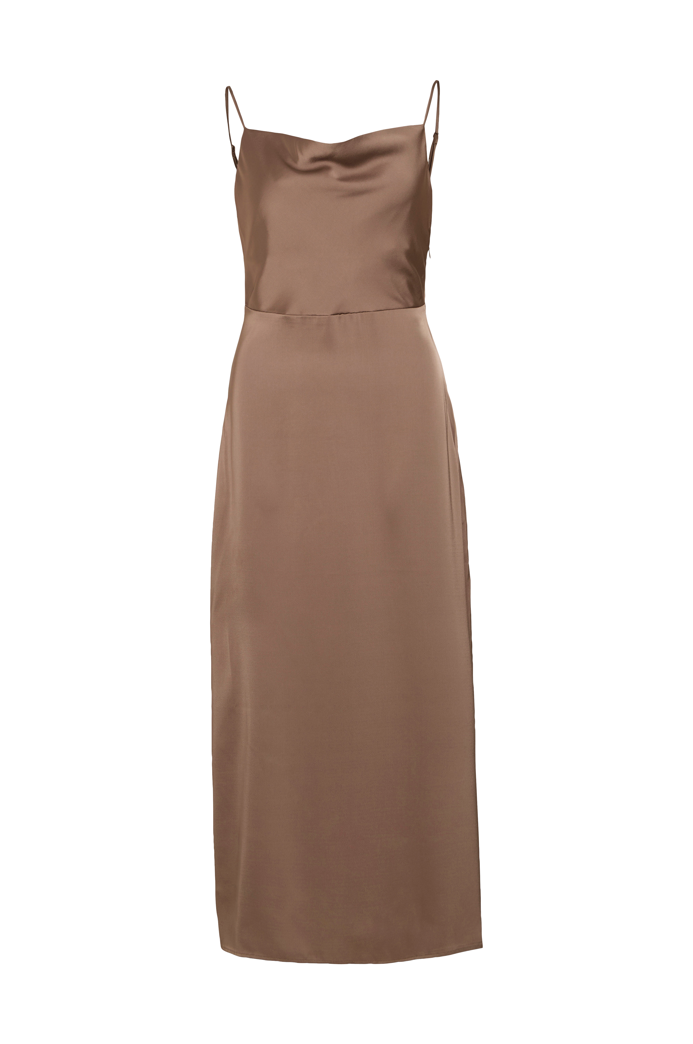 • Fuld længde, elegant kjole i satin• Tynde, justérbare skulderstropper• Dyb ryg• Skjult lynlås i siden• Længde: 134 cm i størrelse 36